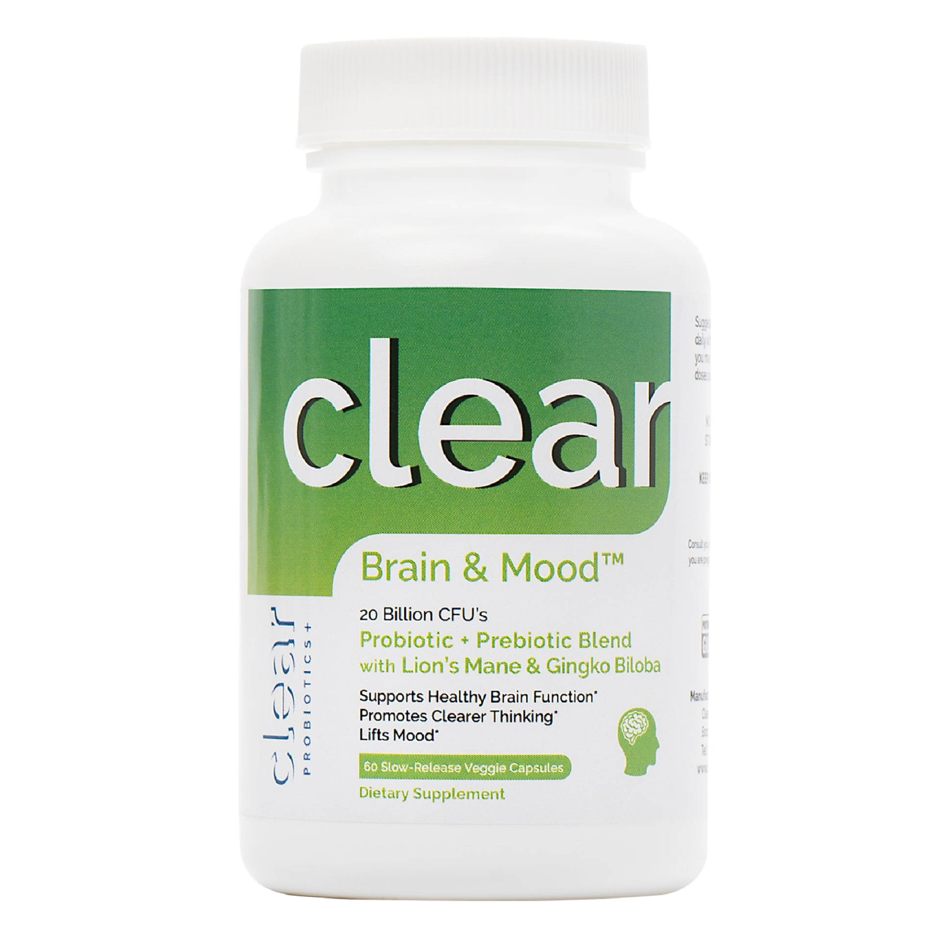 Get your life back from the frustration of brain fog, lack of focus, and low mood with Clear Brain & Mood. This powerful combination of probiotics, Lion's Mane mushroom, and Ginkgo biloba is designed to reduce brain fog, boost mental clarity, and lift moods. With two probiotic strains specifically selected to support brain clarity, memory, and functioning, as well as balanced mood, Clear Brain & Mood provides comprehensive brain support. Lion's Mane mushroom, known for its powerful neuroprotective and neuro-regenerative properties, improves brain health and functioning, memory, cognitive performance, and concentration. It acts as a prebiotic, ensuring the successful colonization of the probiotics in the gut. Ginkgo Biloba supports cardiovascular health, improves brain functioning and mood, and promotes healthy energy levels. Experience the benefits of probiotics for brain fog and regain your focus and positivity. Order Clear Brain & Mood now and unlock your full cognitive potential.