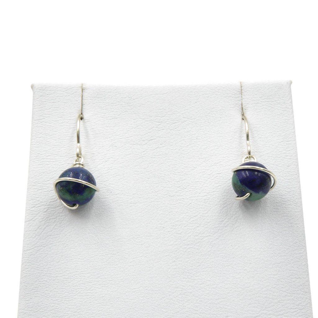 Add a touch of elegance to your style with these stunning Handmade Azurite Earrings. Crafted with care and attention to detail, each earring features a gorgeous Azurite stone wrapped in high-quality Sterling Silver wire. The rich blue and green patterns of Azurite resemble a mini-Earth, creating a unique and eye-catching accessory.