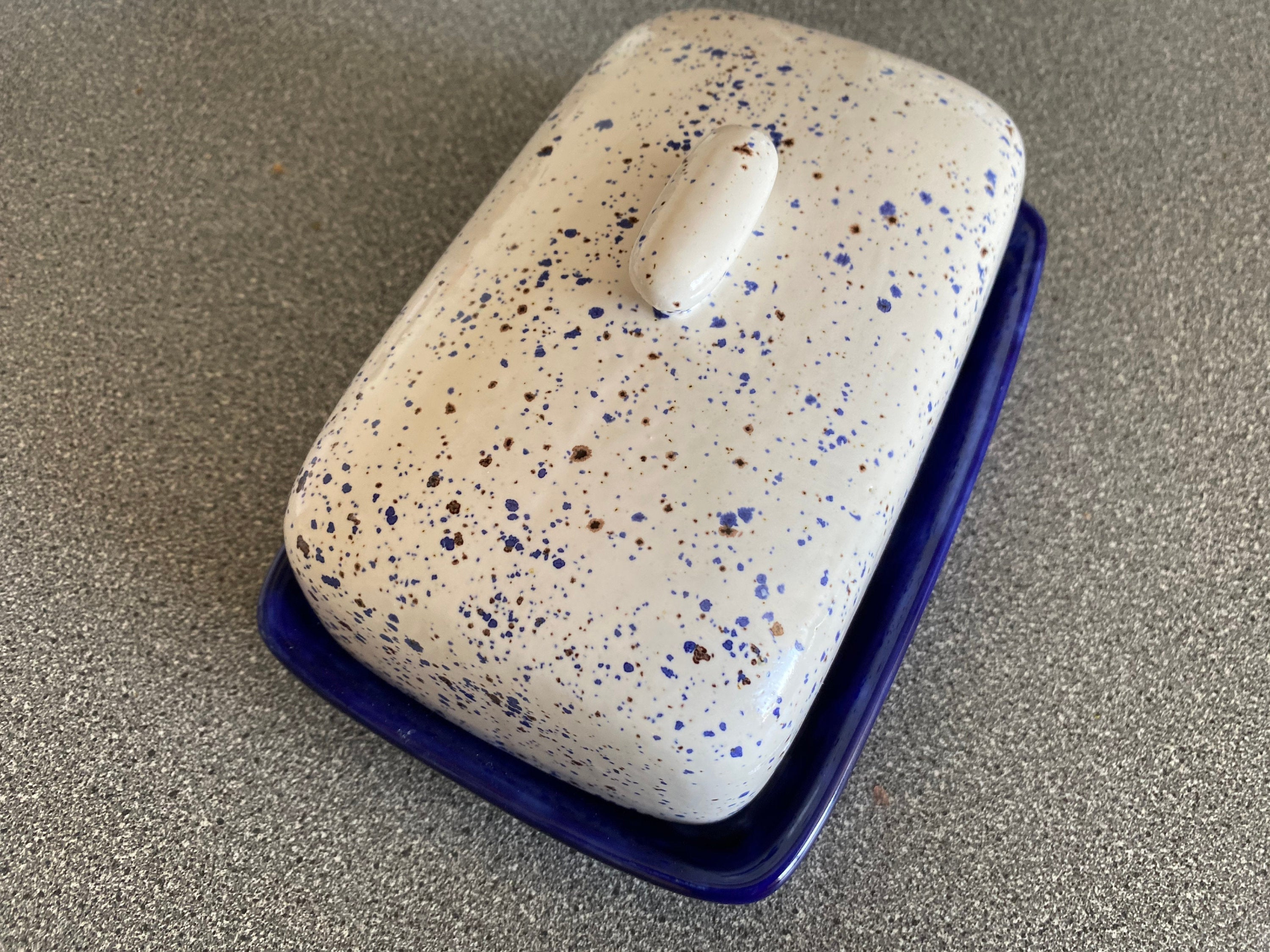 Handmade Pottery Butter Dish with Lid - Beautifully Glazed - Microwave and Dishwasher Safe