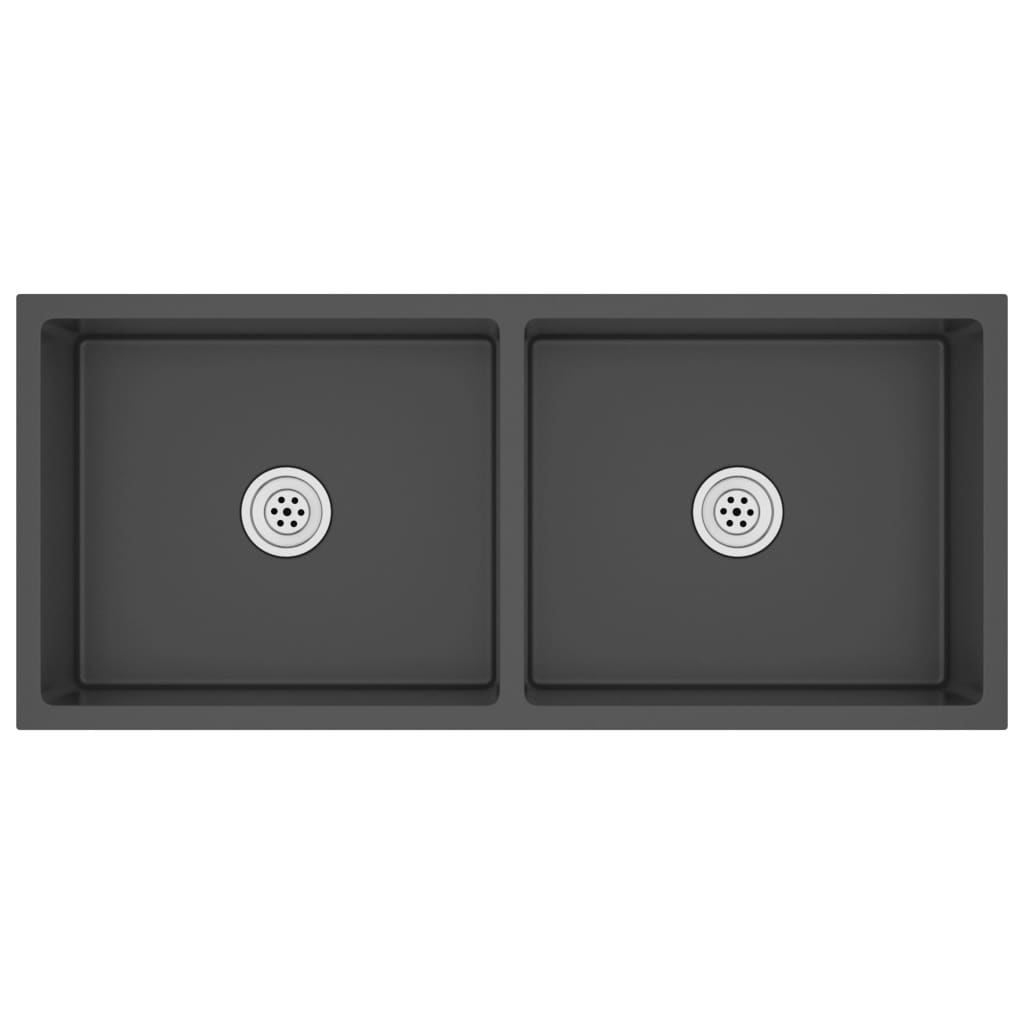 - vidaXL Handmade Kitchen Sink Black Stainless Steel