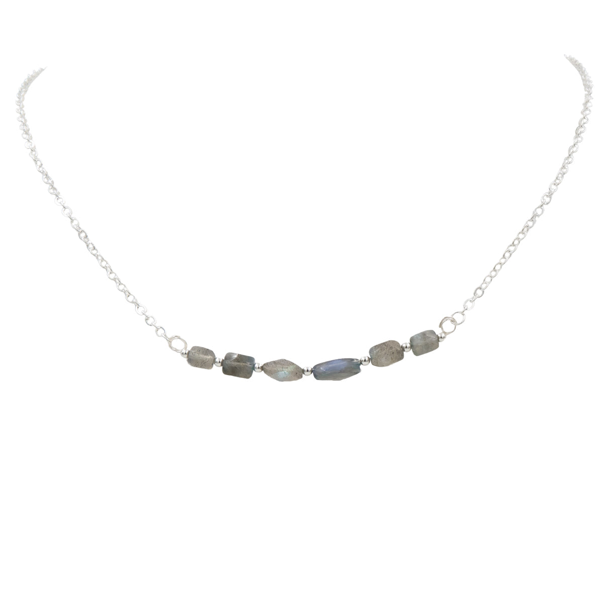 Discover the mesmerizing beauty of our Handmade Iridescent Labradorite Silver Necklace. Crafted with care, this eco-friendly jewelry piece features a stunning labradorite stone that emits captivating blue and silver flashes in every direction. The faceted small rectangular cut of the stone ensures it catches the light for an eye-catching sparkle.