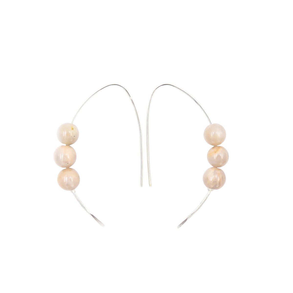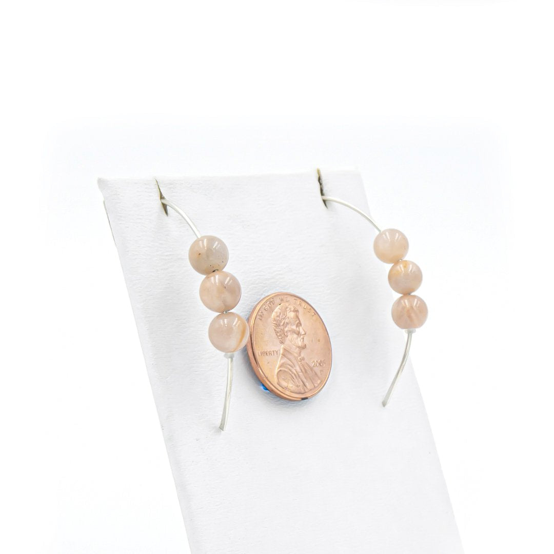 Enhance your style with these beautifully handcrafted Peach Moonstone Curves Earrings. Made with tarnish-resistant Argentium Sterling Silver and featuring a sleek, modern design, these earrings are sure to make a statement. The wire is expertly formed into a dangle style, gently curving around a wooden circular mold for added elegance.