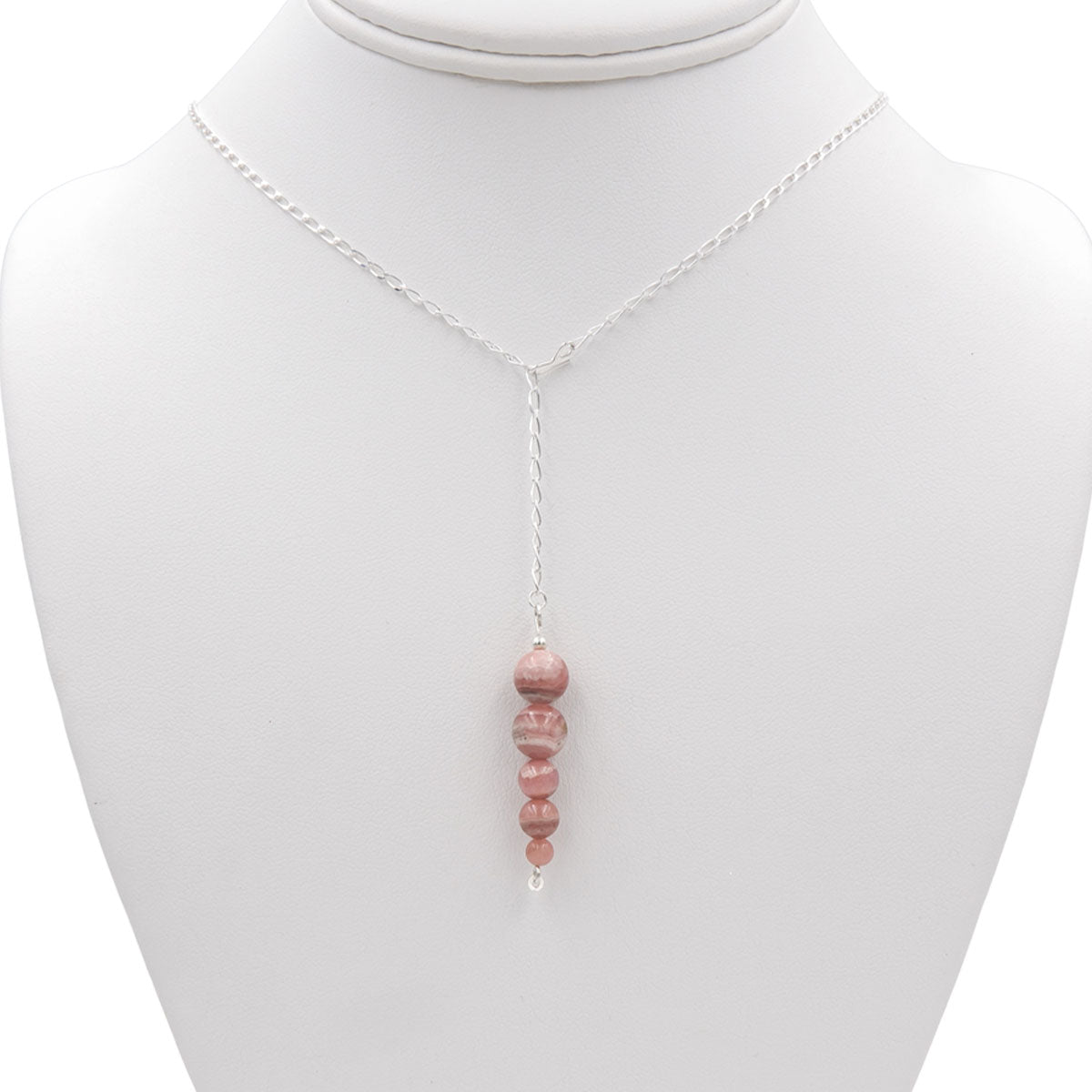 - Handmade Rhodochrosite Sterling Silver Lariat Necklace | Eco-Friendly Jewelry | Adjustable Length | Hypoallergenic & Nickel-Free | Natural Stone