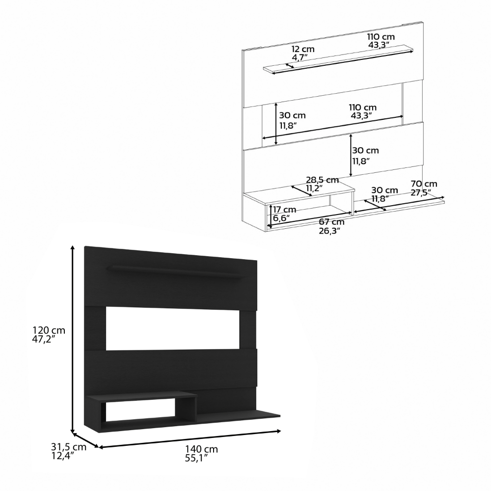 - Dimensions: Height - 47.2", Width - 55.1", Depth - 12.4"