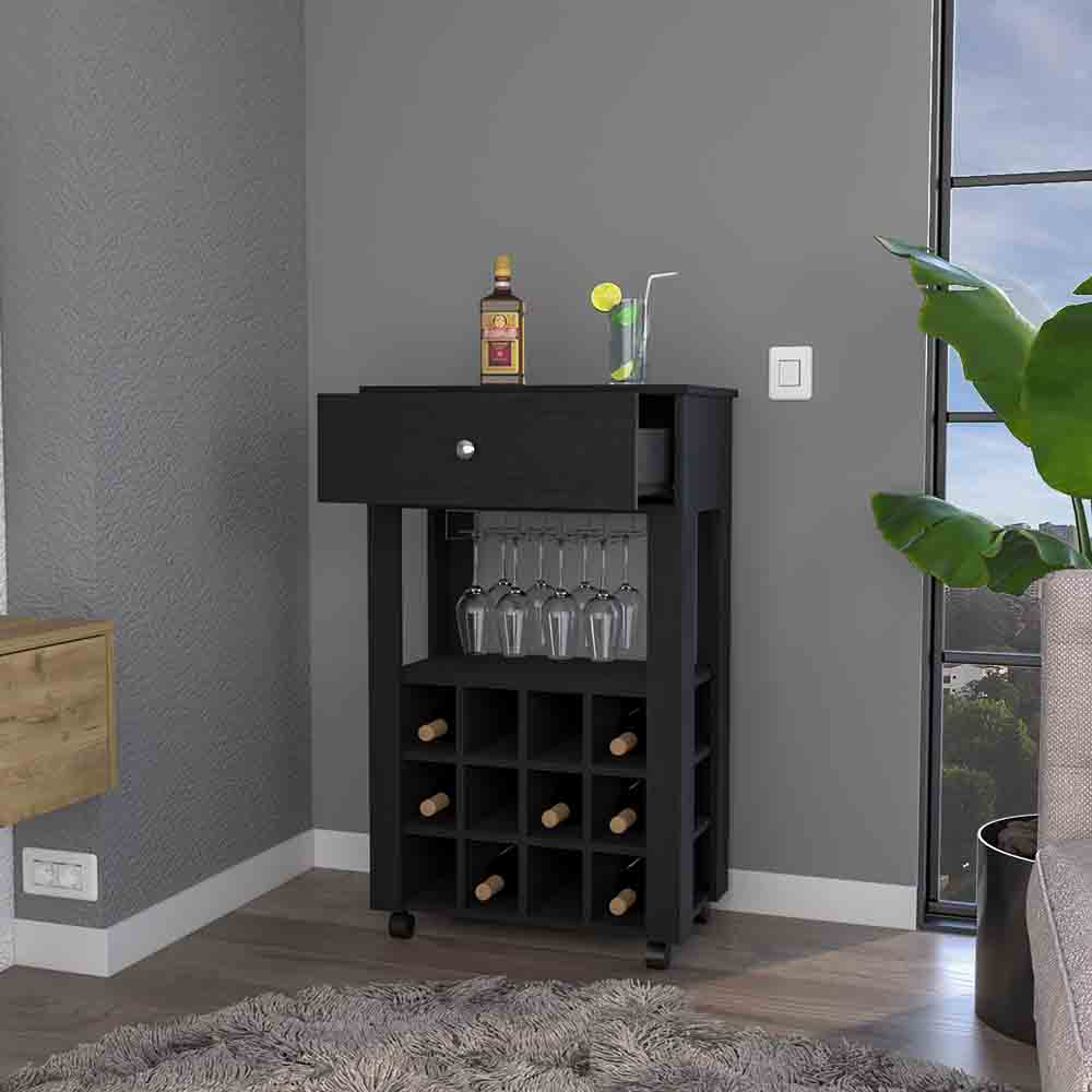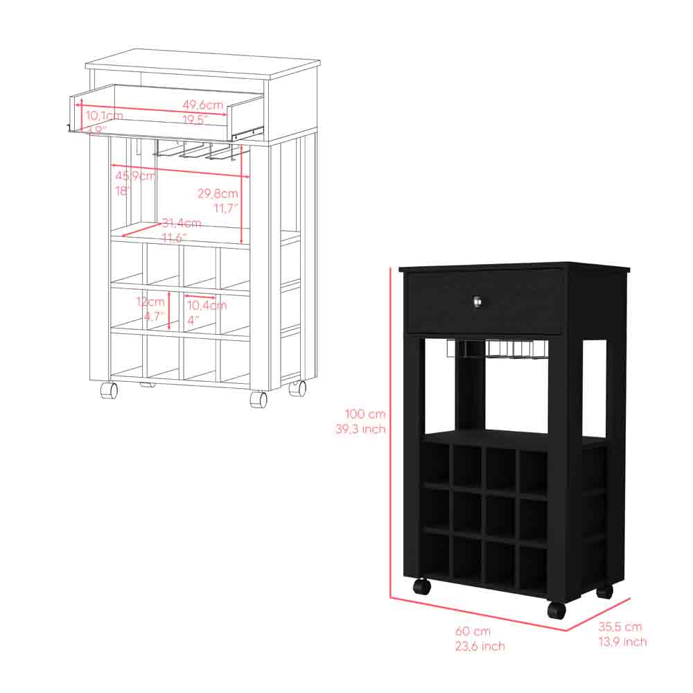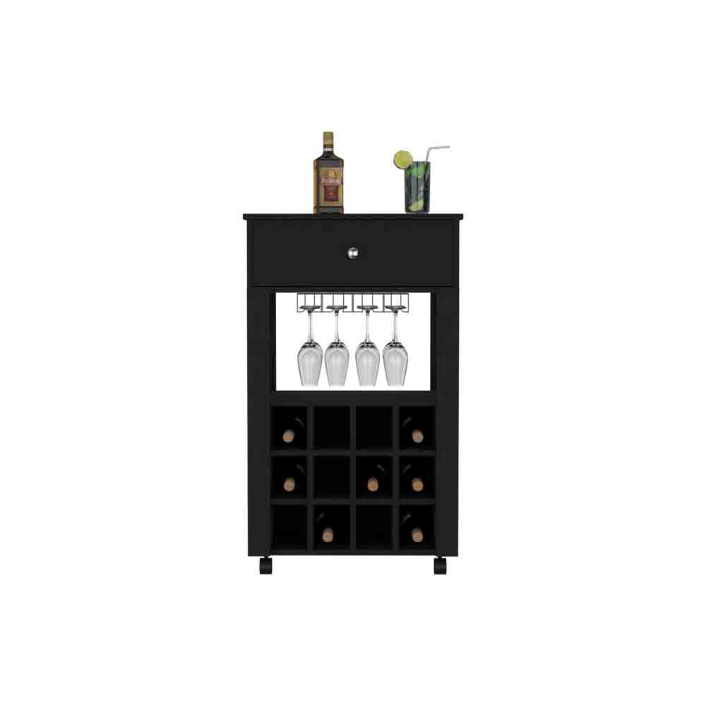 - Bar Cart Bayamon - Contemporary Wine Storage with Twelve Wine Cubbies