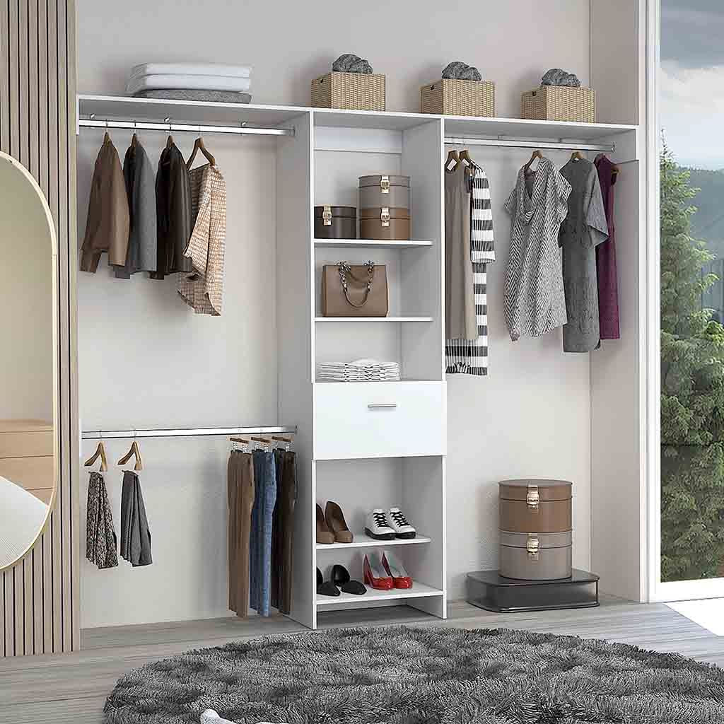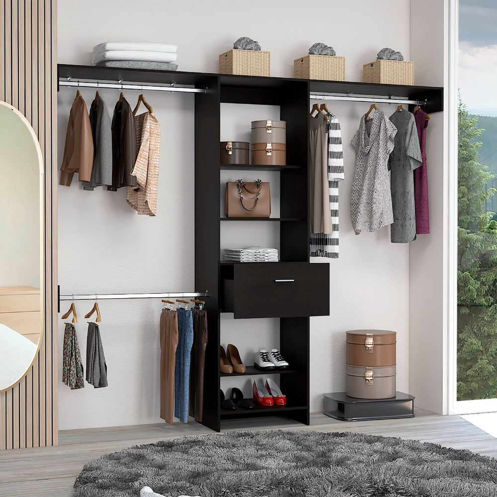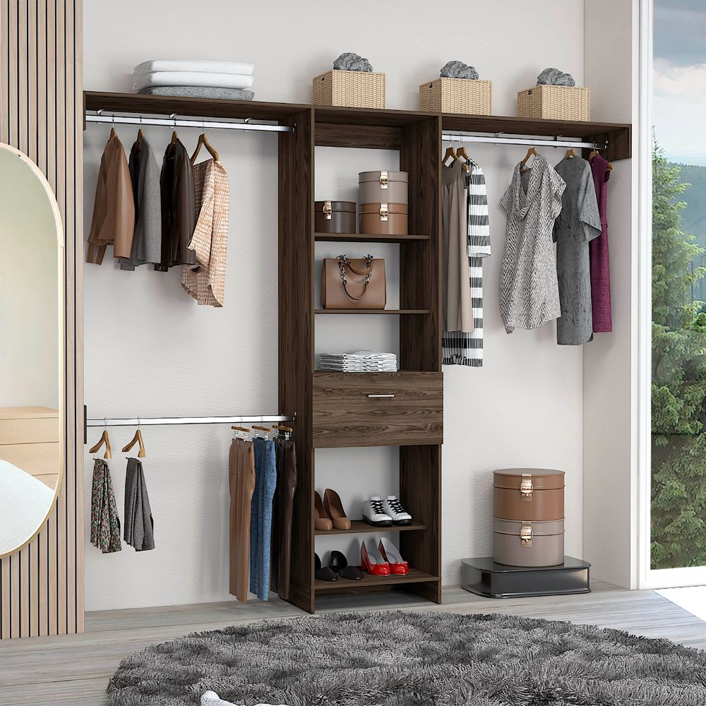 - Brisk Closet System - One Drawer, Three Metal Rods, Five Open Shelves