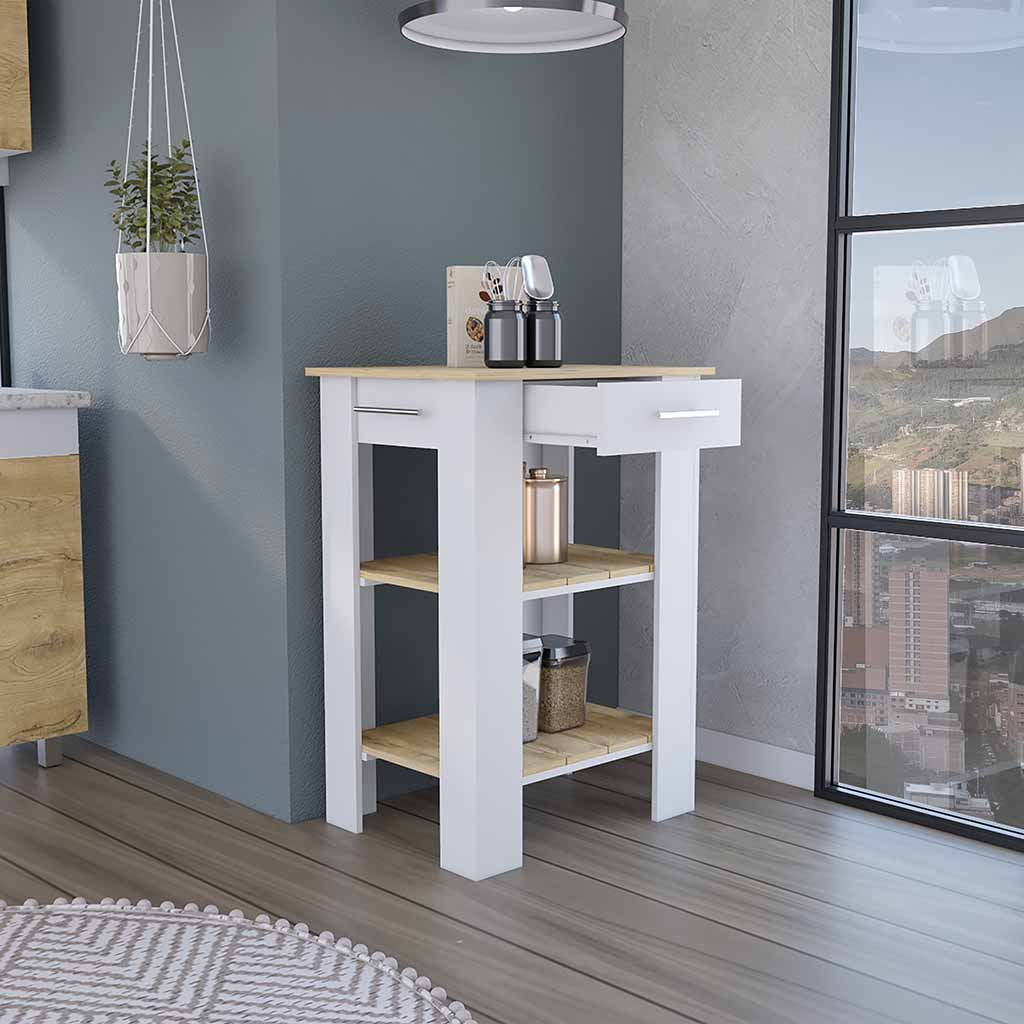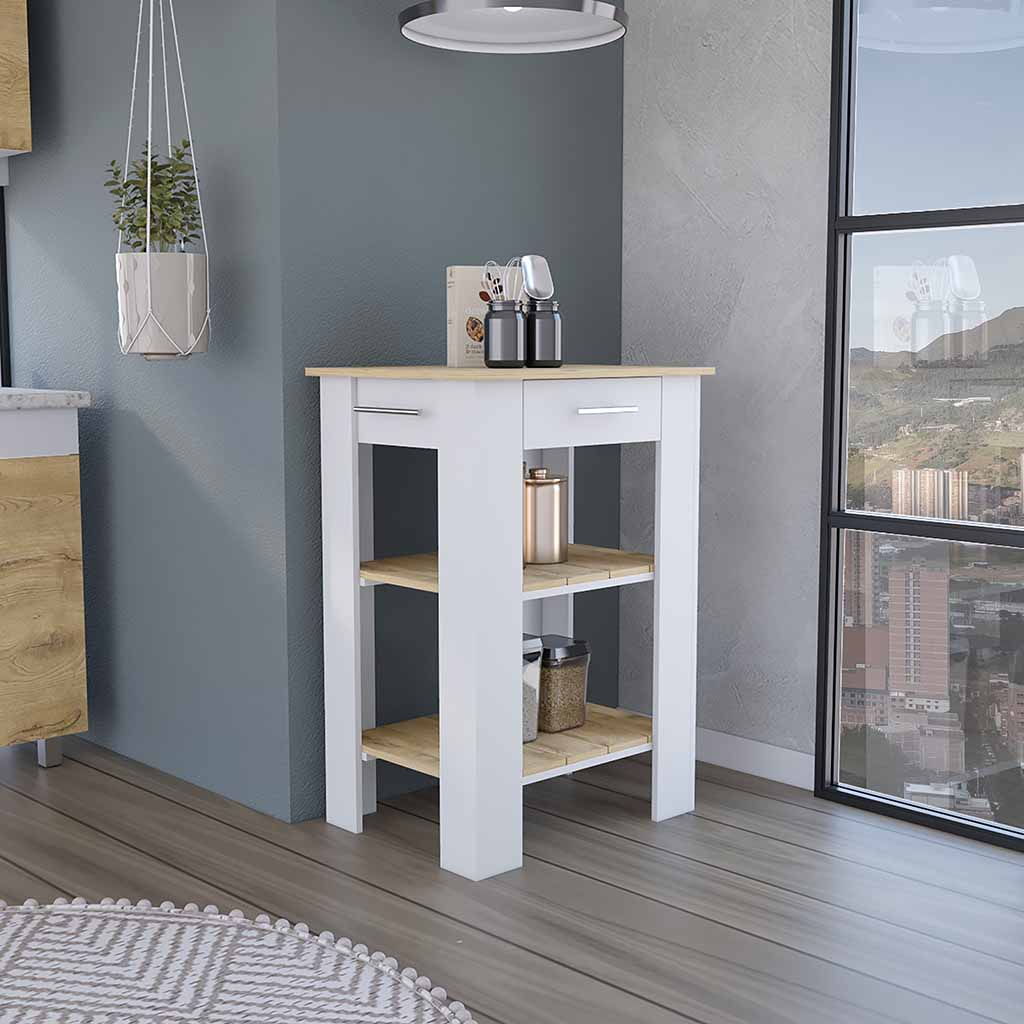 - Delos 23 Kitchen Island, Two Shelves, Two Drawers - Functional and Stylish
