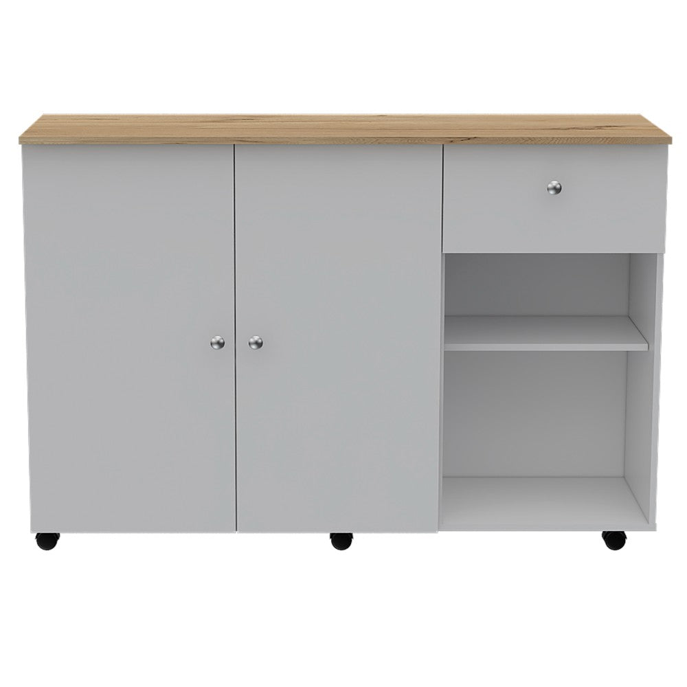 - Kitchen Island Cart Indiana, Four Interior Shelves, White / Light Oak Finish