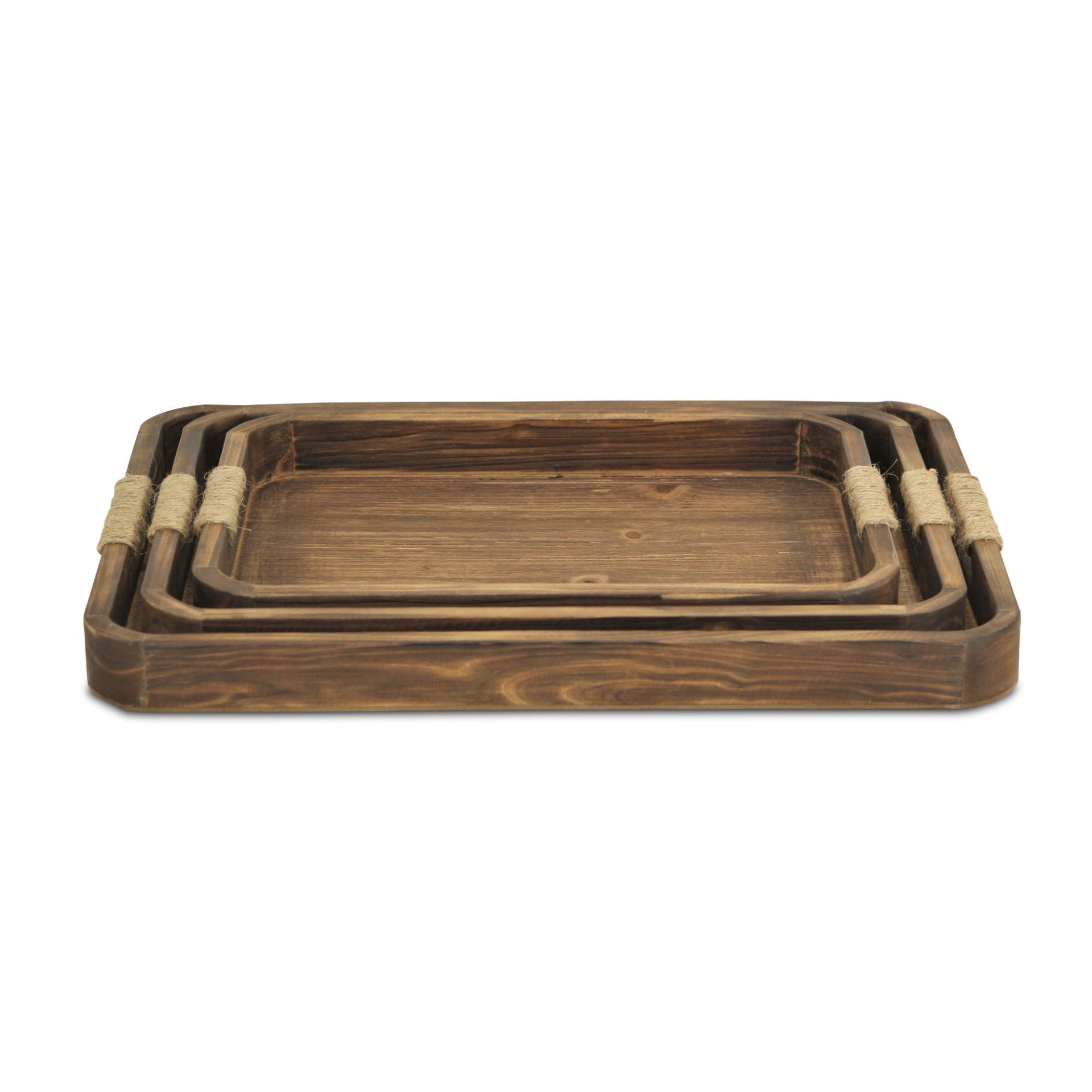 Add a touch of elegance and functionality to your home with this versatile 20" brown rectangular wood handmade tray with handles. Made from genuine wood, this tray offers both durability and a classic look that will complement any decor.