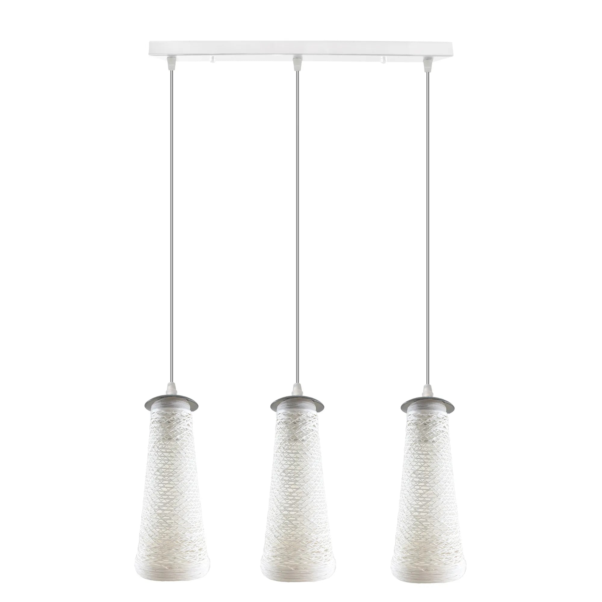 - 3 Head Rectangle Base Handmade White Woven Twine Shade Ceiling Pendant Light~4186