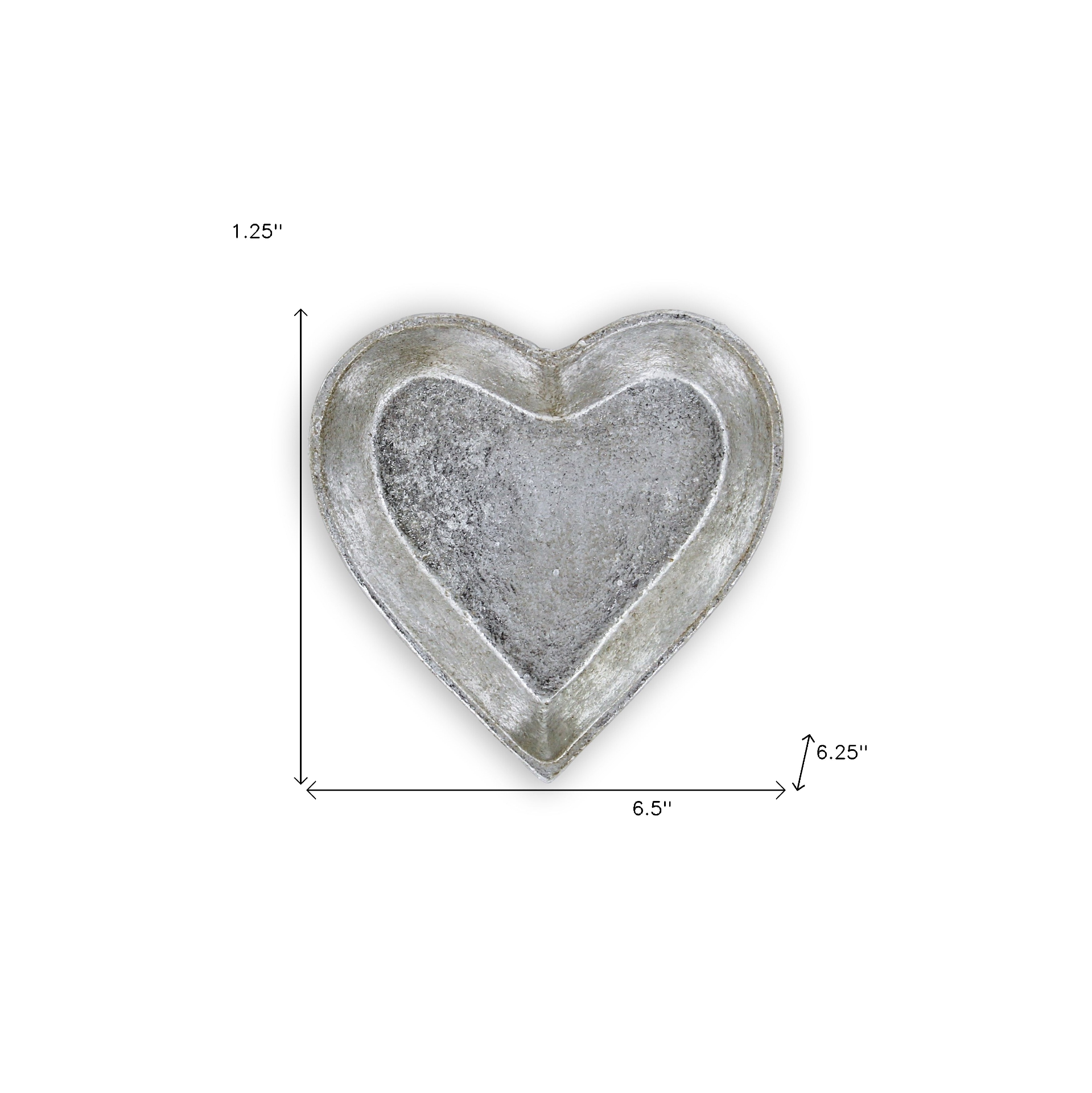 Revitalize your space with this convenient and visually appealing 7" silver heart cast iron handmade vanity tray. Crafted from sturdy and durable cast iron, this heart tray is versatile enough to blend seamlessly with a variety of color palettes and aesthetics.