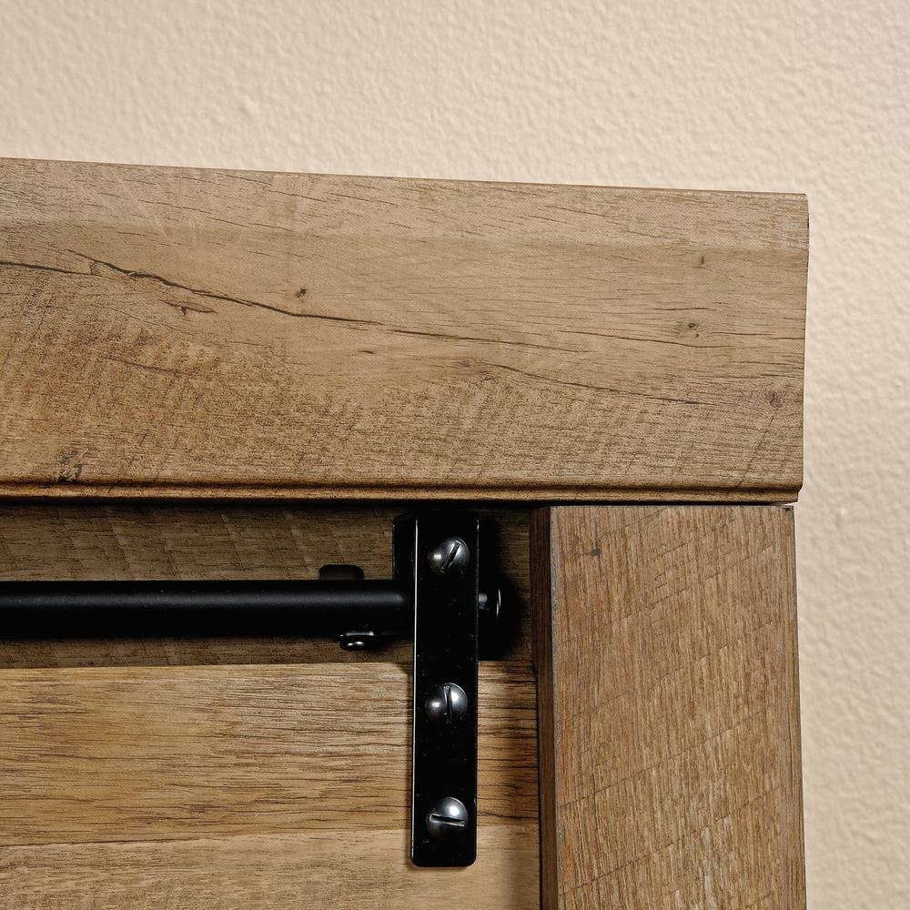 This farmhouse accent cabinet from the Adept Storage collection is the perfect solution to all your storage needs while adding a touch of rustic charm to your space. With its barn-style sliding door, this cabinet offers convenient hideaway storage options.