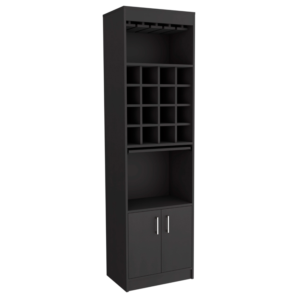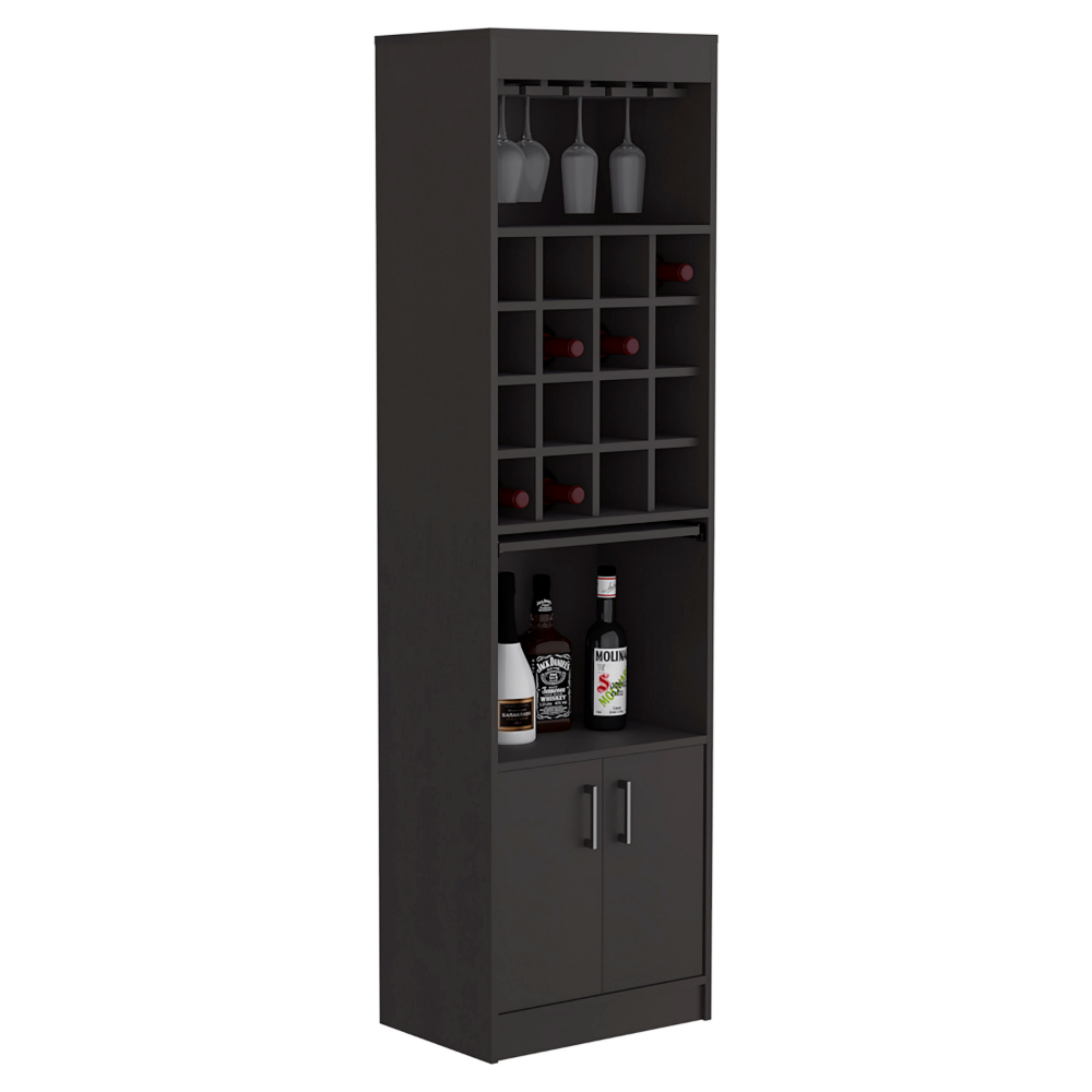 Add a touch of classic and modern style to your home bar with the Athens Kava Bar Cabinet. This contemporary piece is designed to complement any decor, while providing ample storage space for your drinks and cocktail essentials. With 16 wine cubbies, two open shelves, and a double door cabinet, you'll have plenty of room to store your favorite bottles and prepare your favorite cocktails.