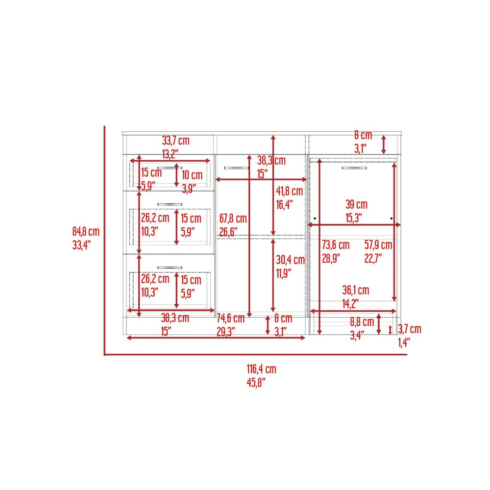 - Flexible cabinet for additional storage (28.9''H x 15.3''W)