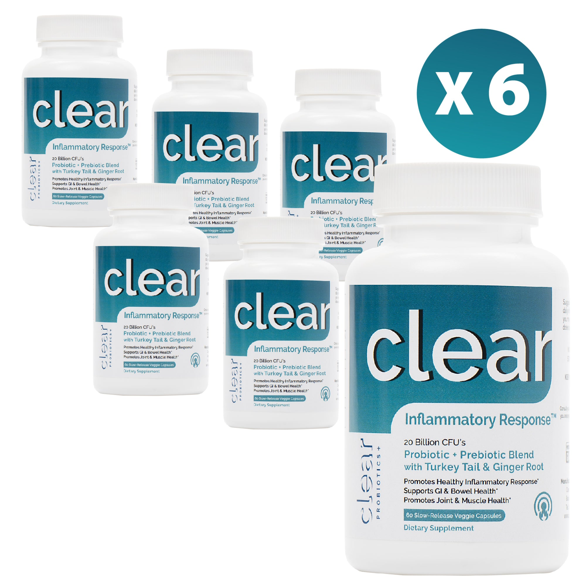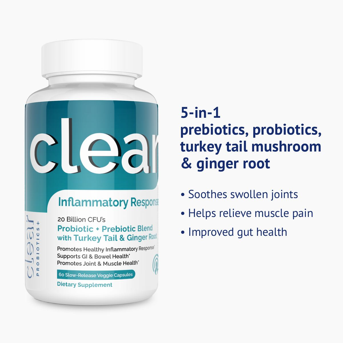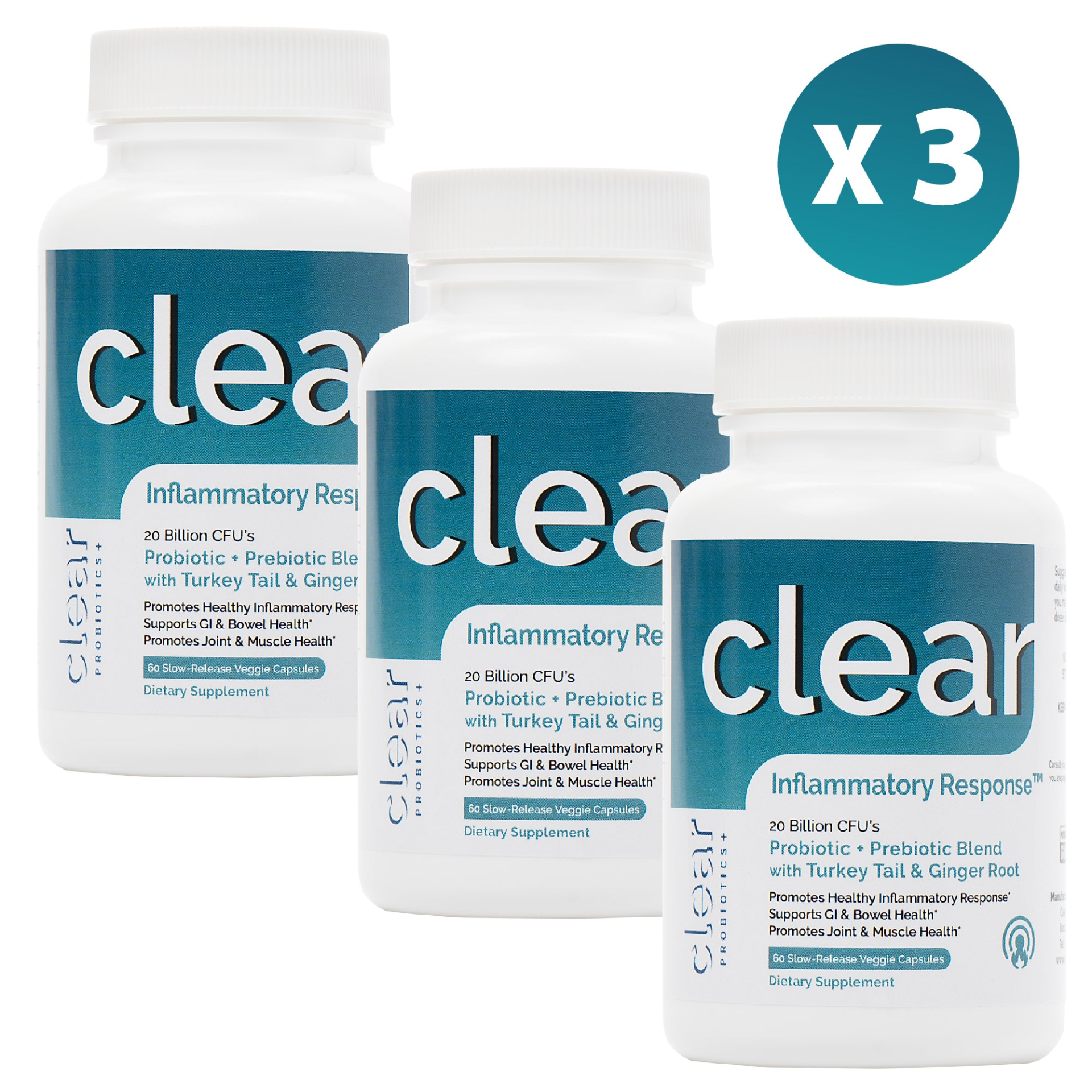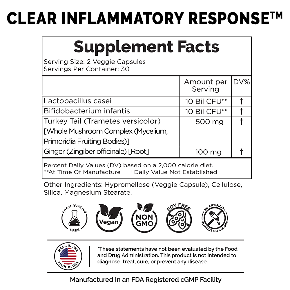 - Clear Inflammatory Response - Probiotic Strains, Turkey Tail Mushroom, Ginger Root