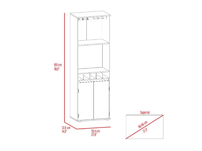 - Dimensions: Height: 70.8”, Width: 22.9”, Depth: 14.8”