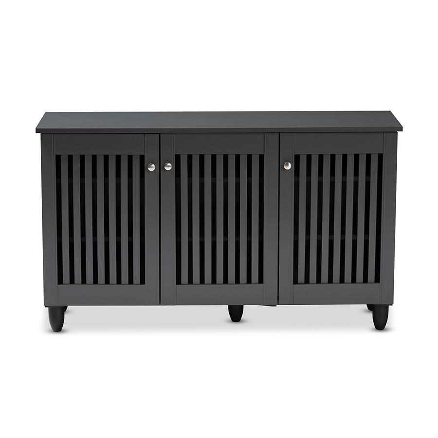 Dark Gray 3-Door Wooden Entryway Shoe Storage Wide Cabinet