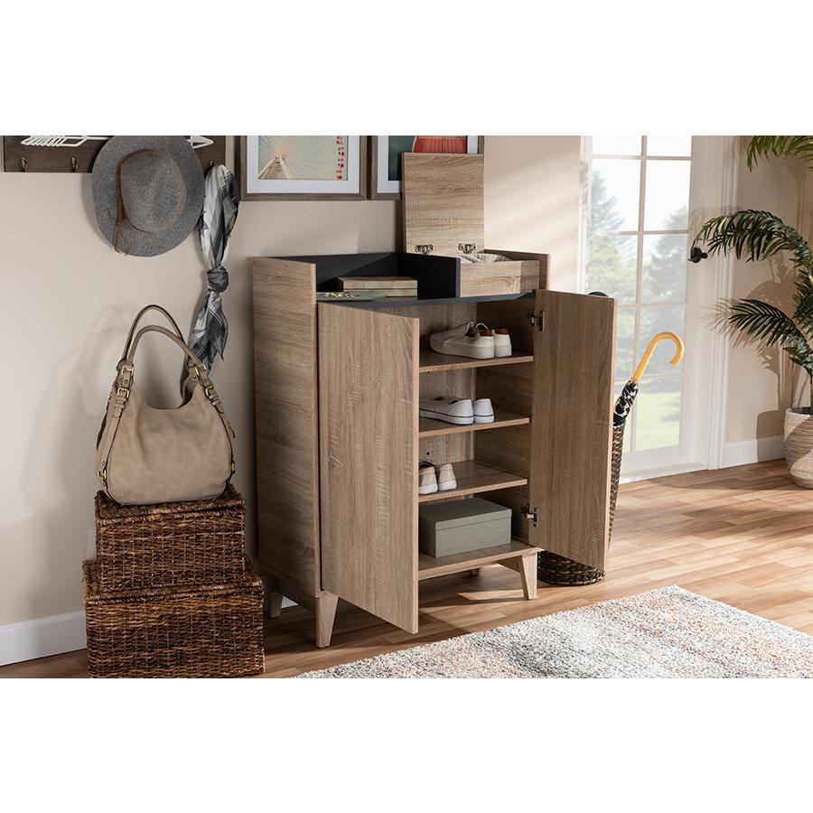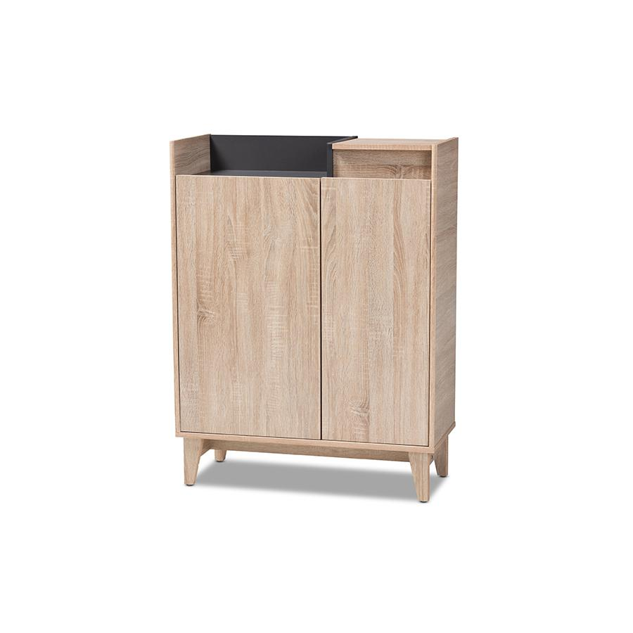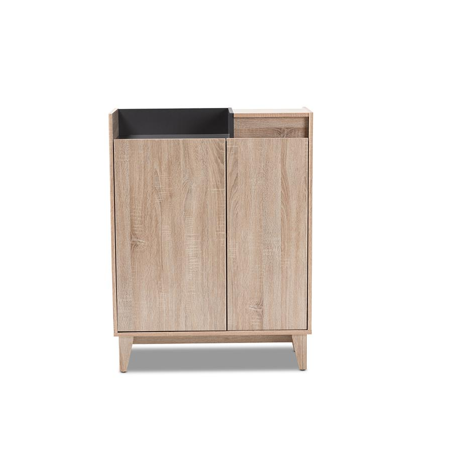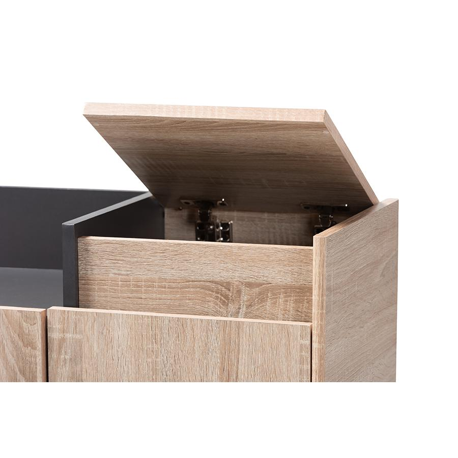 Enhance the elegance of your entryway with the Dark Gray Entryway Shoe Cabinet with Lift-Top Storage Compartment. Inspired by sleek Scandinavian design, this shoe cabinet is a perfect blend of style and functionality. Constructed from engineered wood, it features a two-tone oak and dark grey finish that adds visual interest to any space.