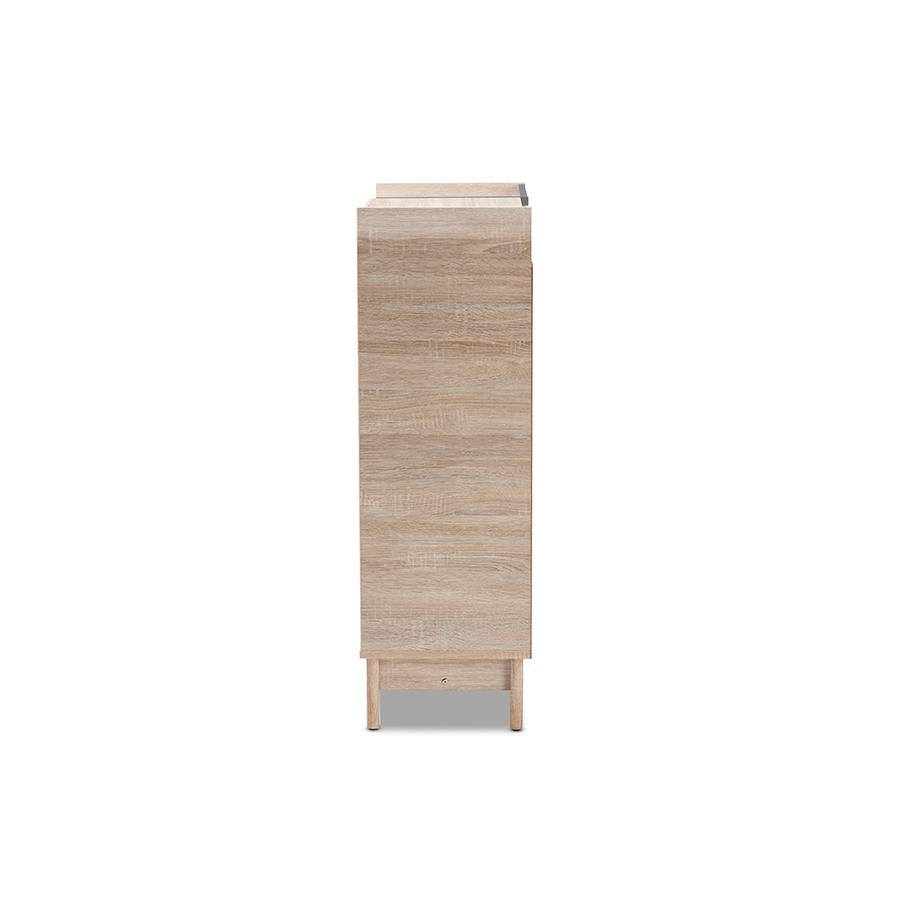 The mid-century modern design influence is evident in the angled, tapered legs of this shoe cabinet. It adds a touch of sophistication and uniqueness to your home decor.