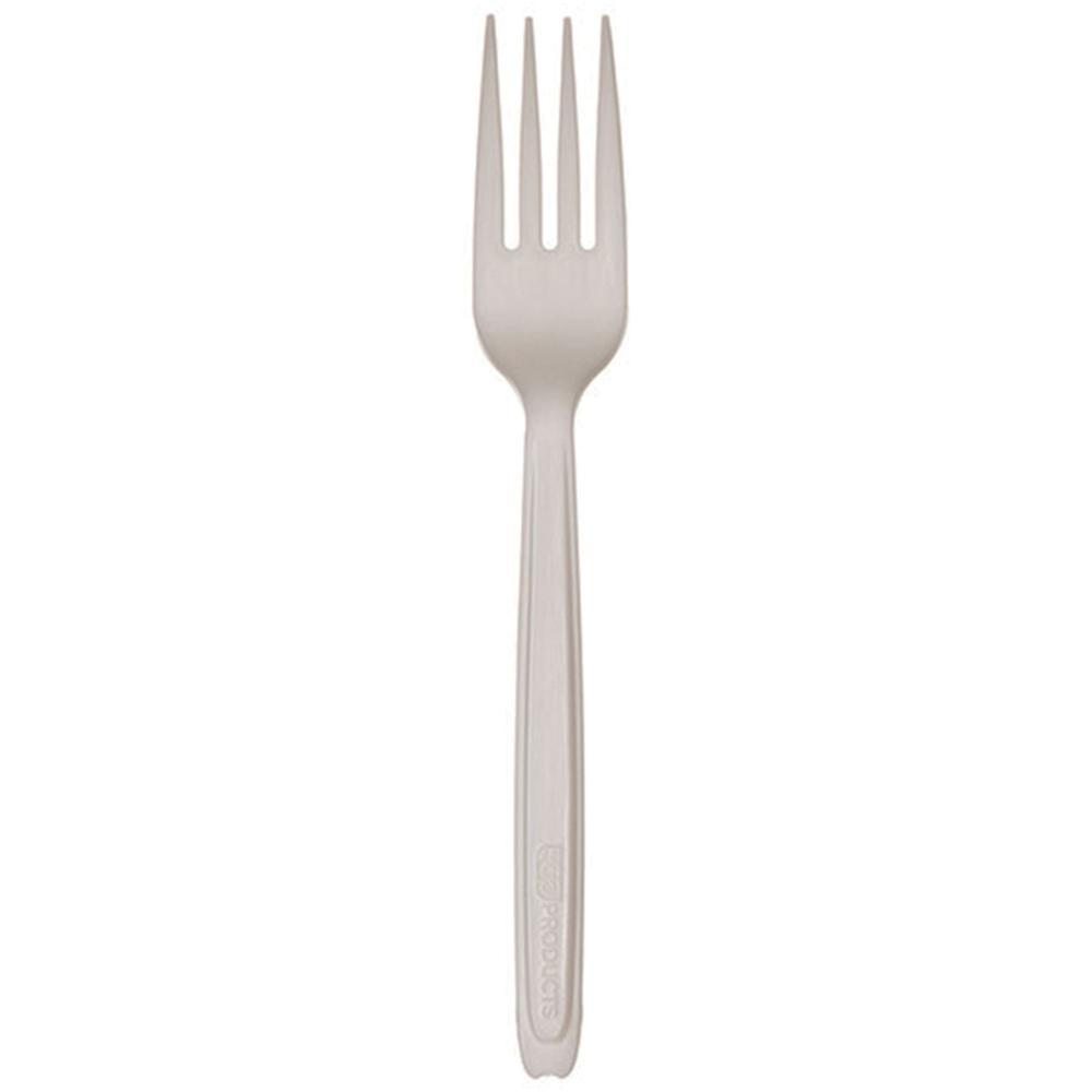 - Forks are made of PLA (Polylactic Acid), a plant-based plastic