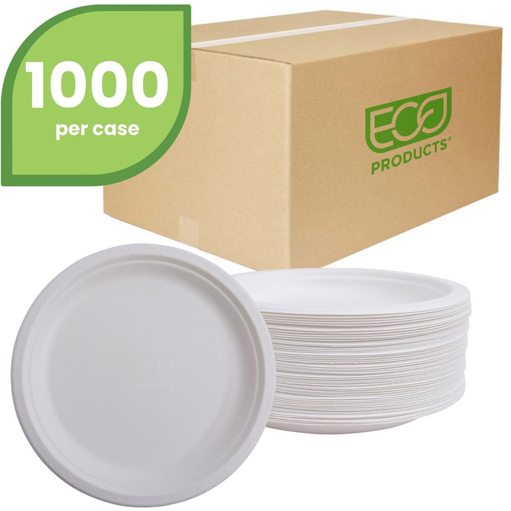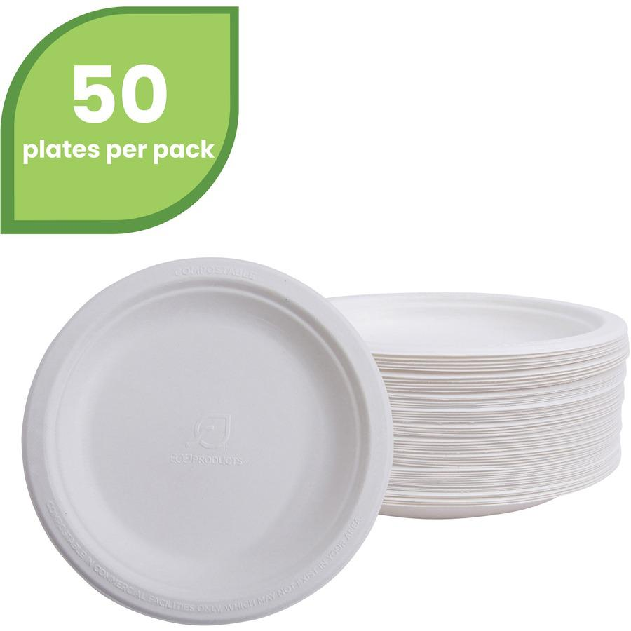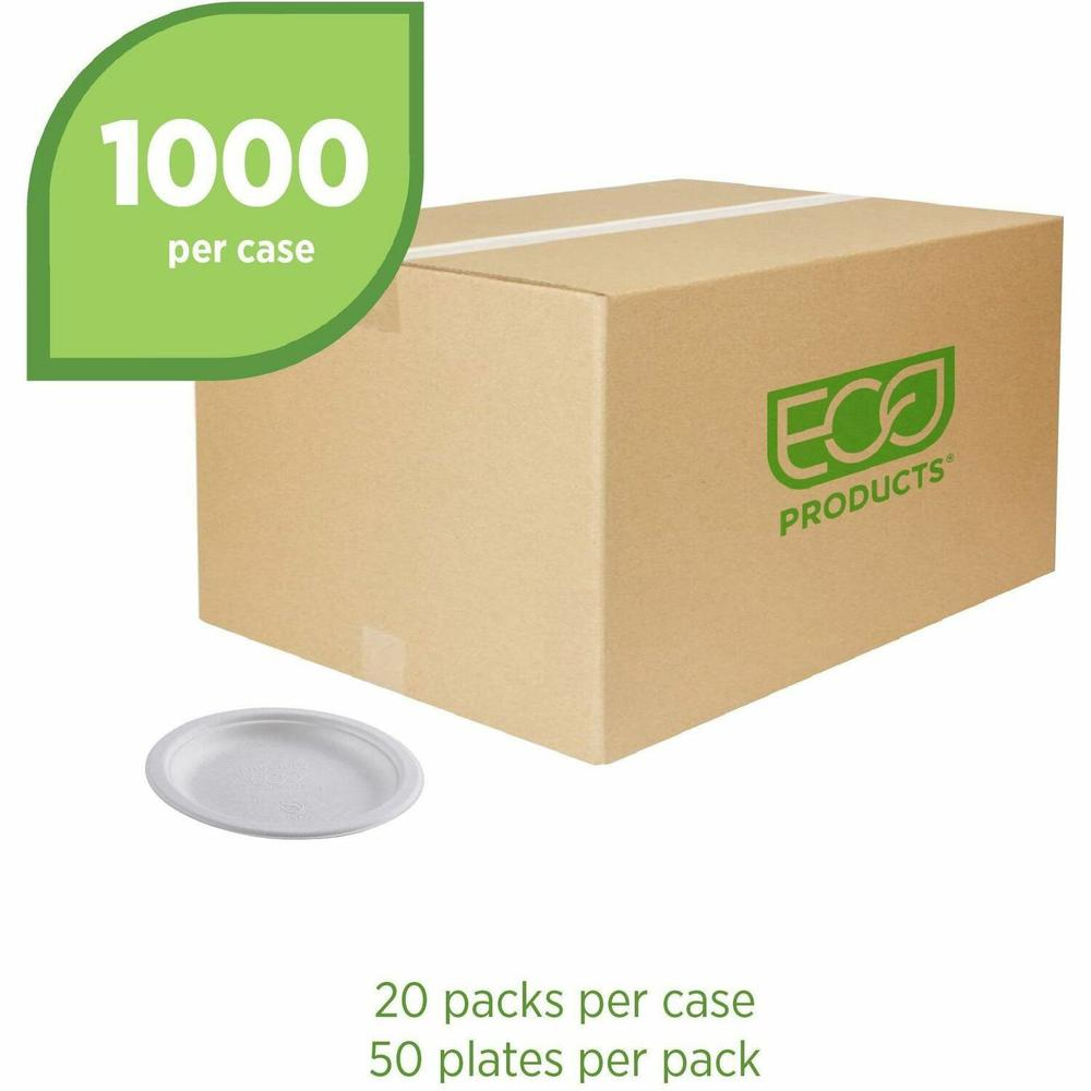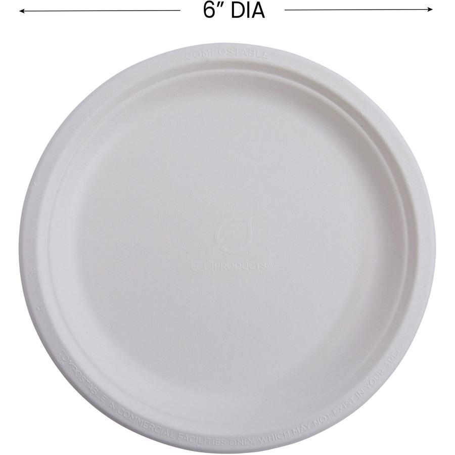 Eco-Products Vanguard 6" Sugarcane Plates - Breakroom - Disposable - Microwave Safe - 6" Diameter - White - Sugarcane Fiber Body - 1000 / Carton