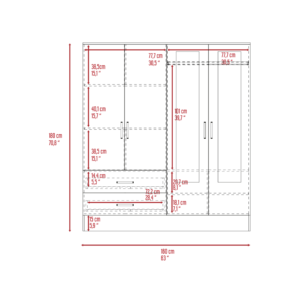 Gangi 160 Armoire, Double Door Cabinet, Two Mirrors, Two Drawers, Rod, Six Shelves - Spacious and Elegant Storage Solution