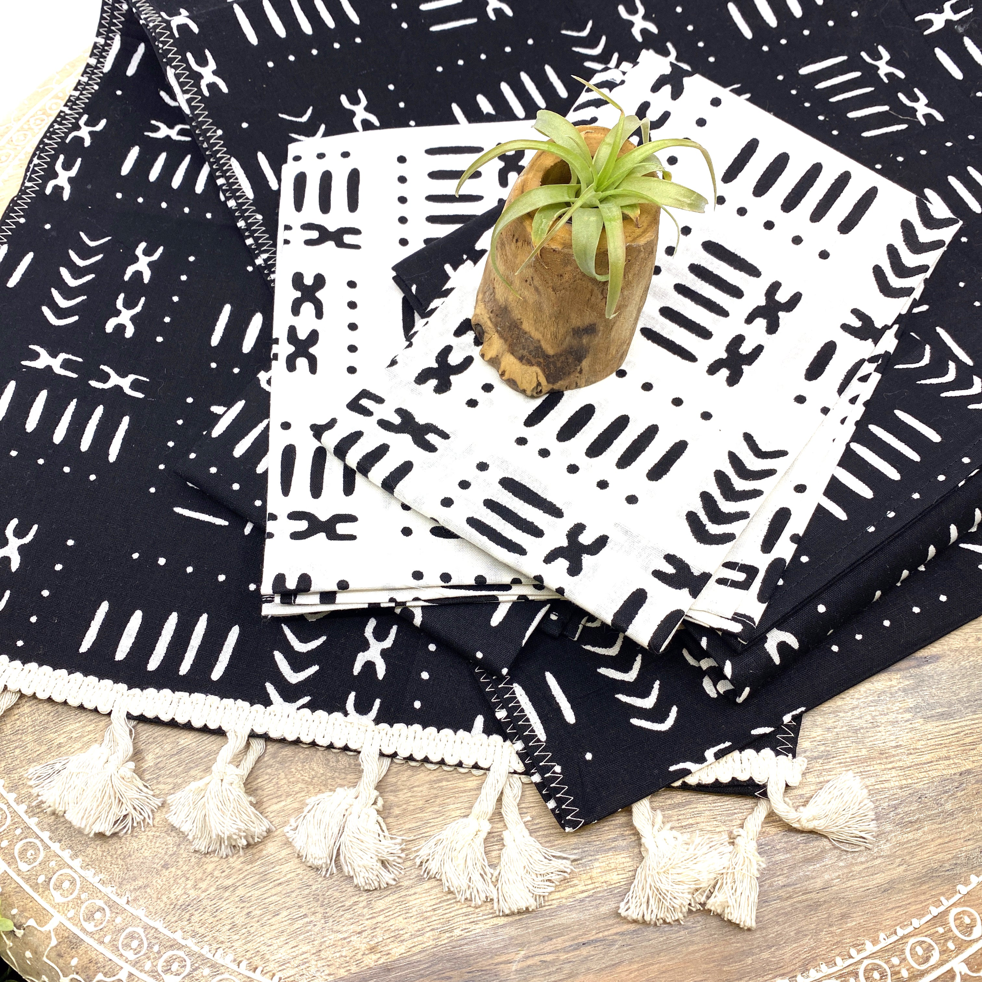 Handmade Coffee Table Runner Black Mudcloth Wax Print