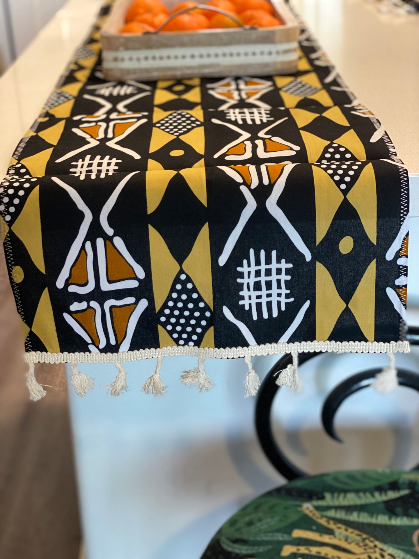 Handmade Coffee Table Runner Brown Bologan Wax Print