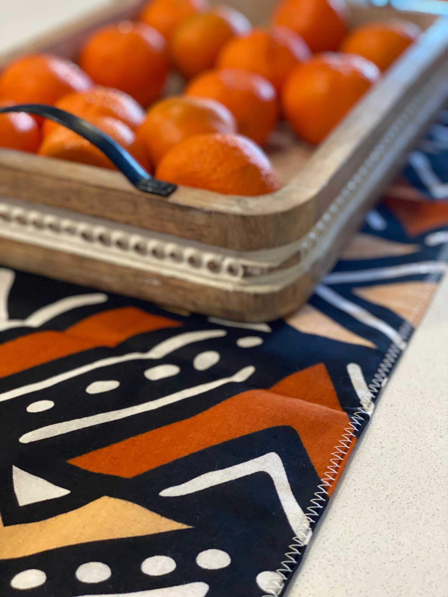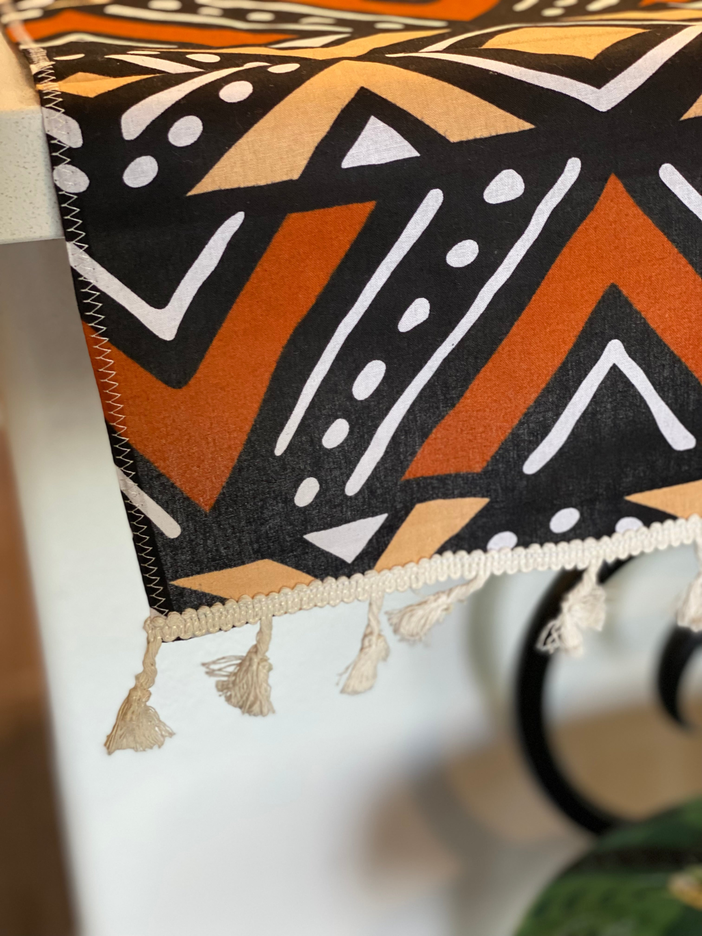 Handmade Coffee Table Runner - Orange Bologan Wax Print | Unique African Design