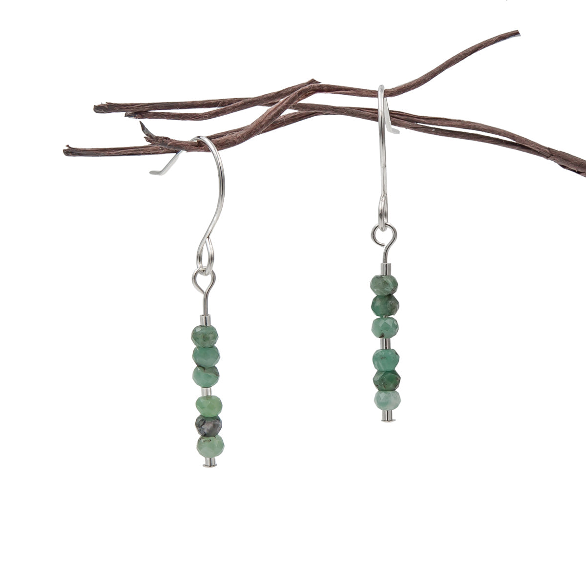 - Handmade Emerald Columns Sterling Silver Earrings | May Birthstone