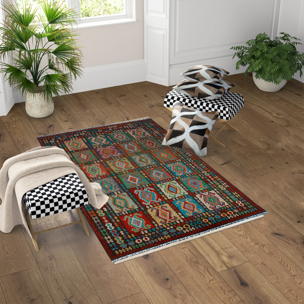 Handmade Multicolor Chobi Kilim Rug - Authentic Woolen Kilim Rug