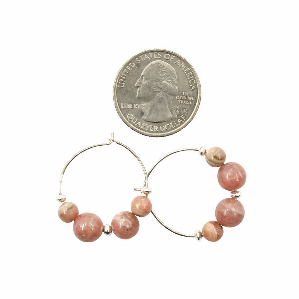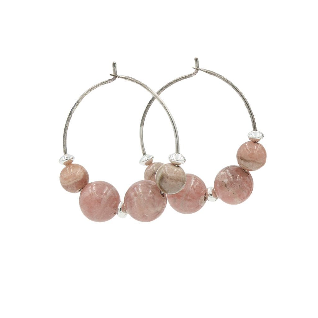 - Handmade Pink Rhodochrosite Silver Hoop Earrings | Eco-Friendly Jewelry