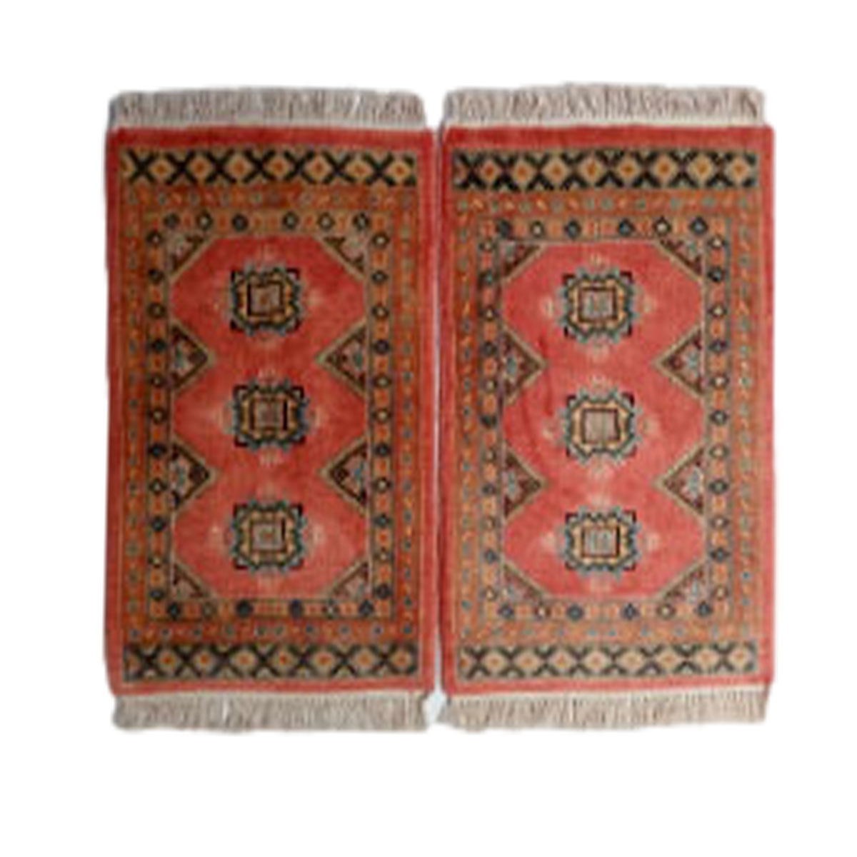 - Handmade Silk Bokhara Peru Tan Woolen Rug - Authentic 100% Hand-Knotted Area Rug