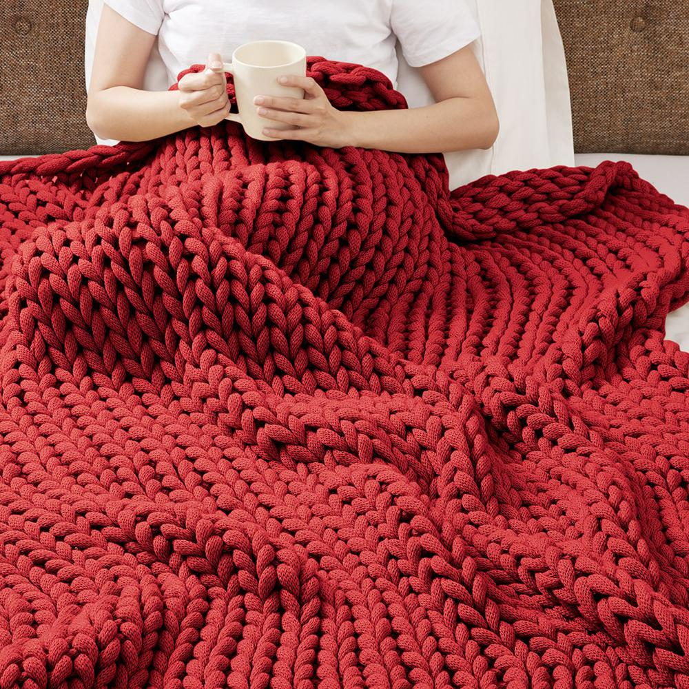 Snuggle up and get cozy with the Madison Park Chunky Double Knit Handmade Throw.