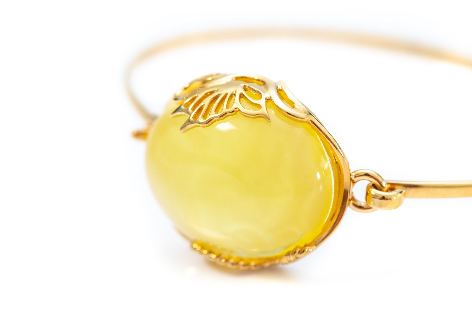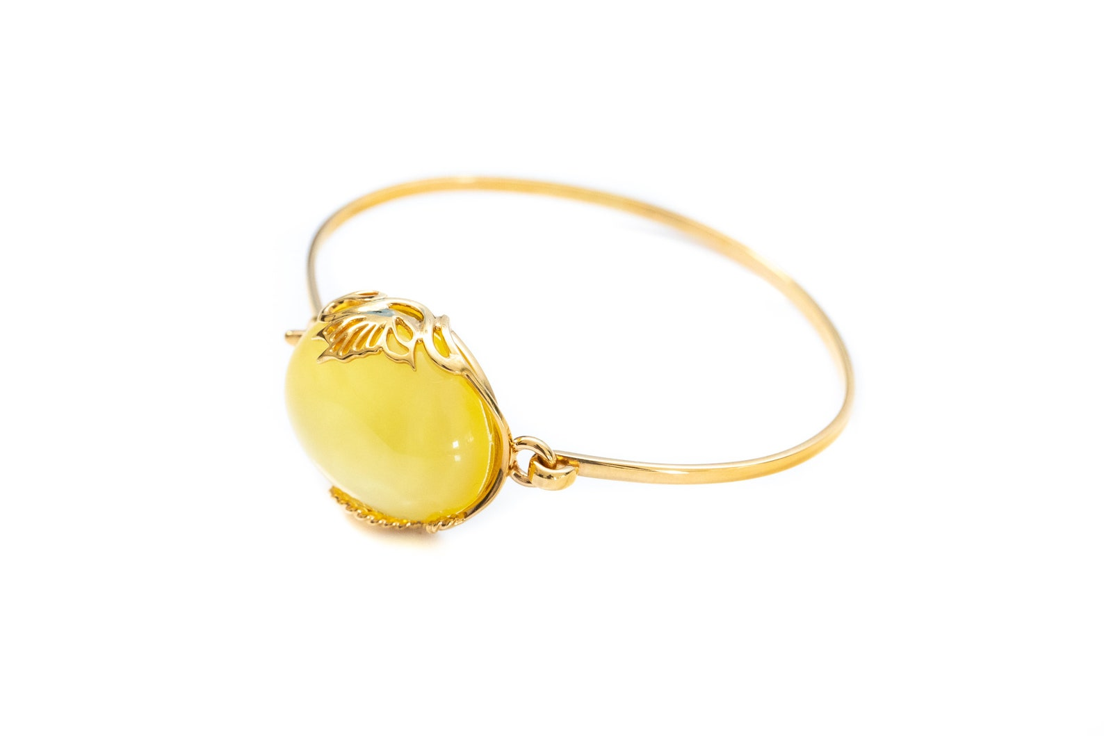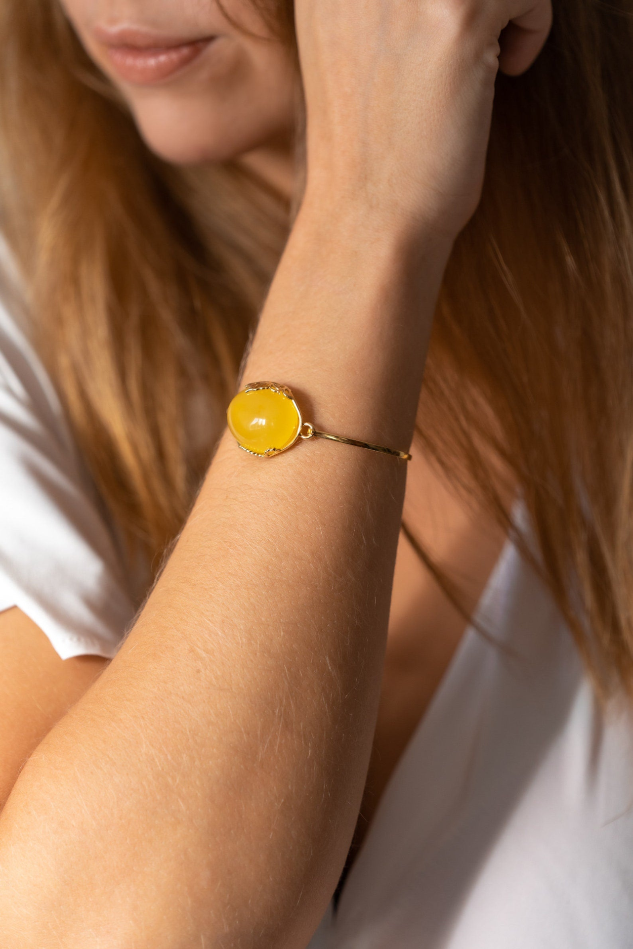 - Handmade Yellow Amber and Gold Bangle | Elegant Statement Jewelry