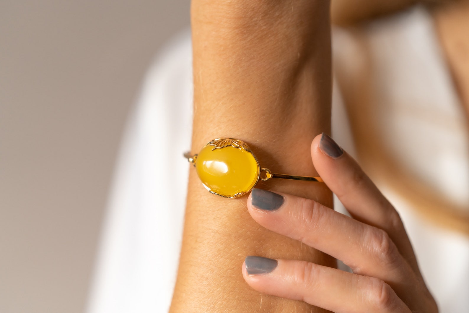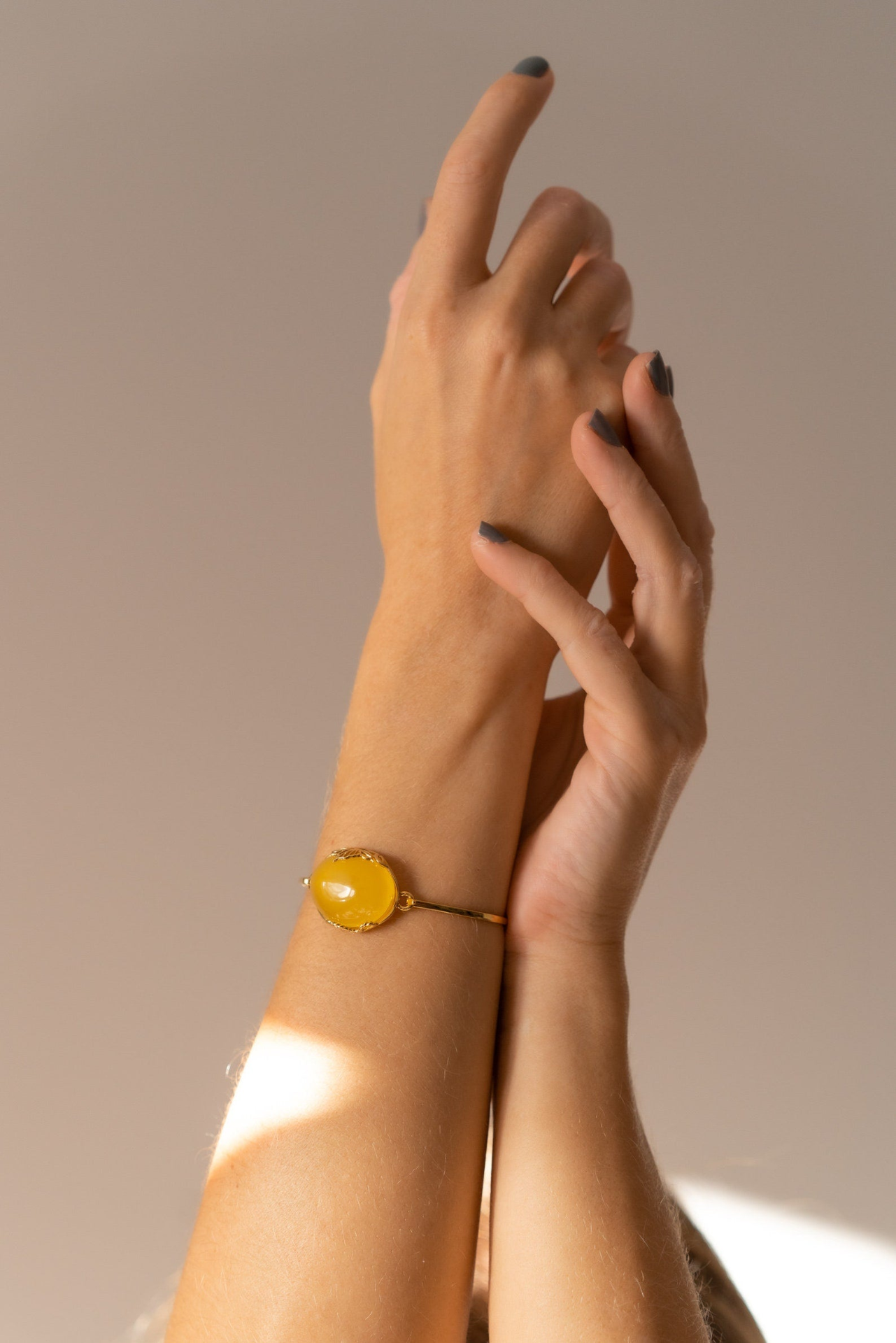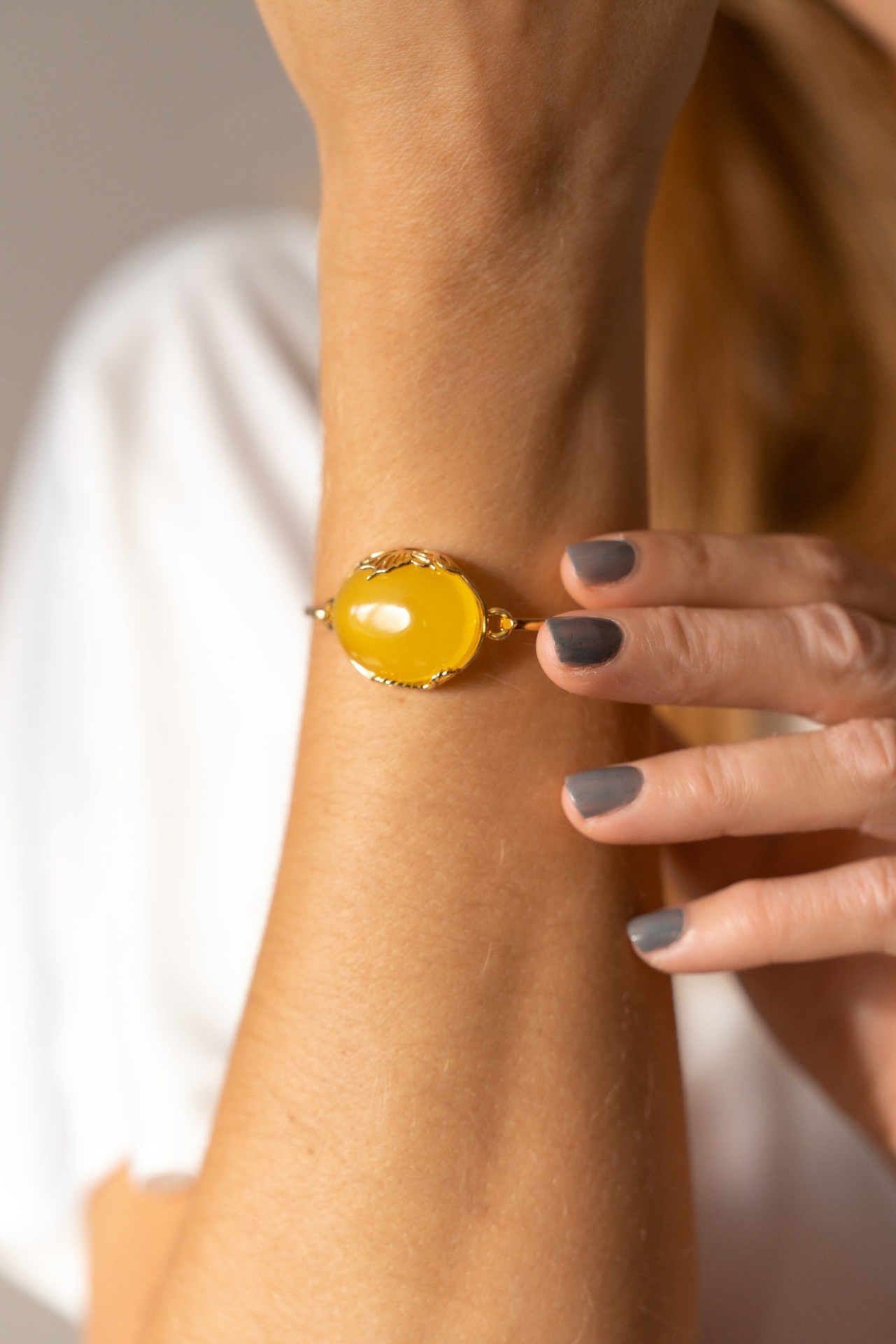 - Handmade Yellow Amber and Gold Bangle | Elegant Statement Jewelry
