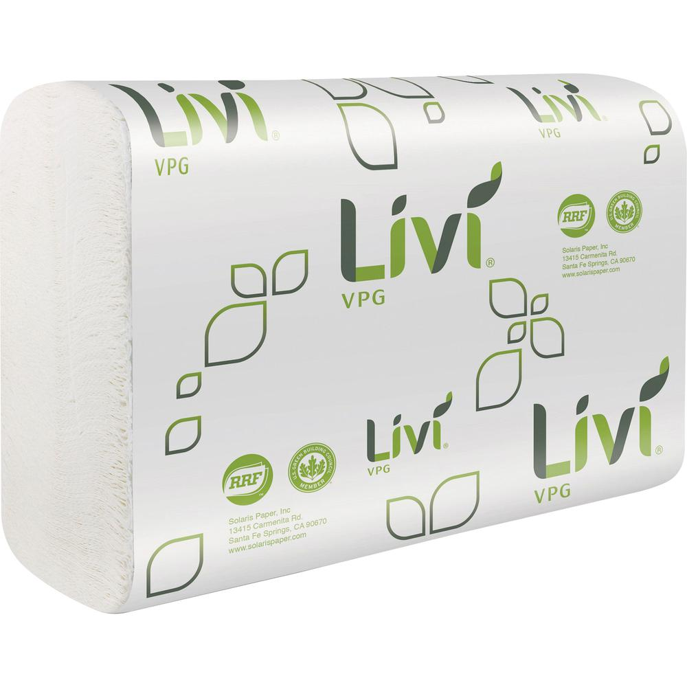 Livi VPG MultiFold Towel - 1 Ply - Multifold - 9.06" x 9.45" - White - Virgin Fiber, Paper - Eco-friendly, Soft, Embossed - For Multipurpose - 250 Per Pack - 16 / Carton