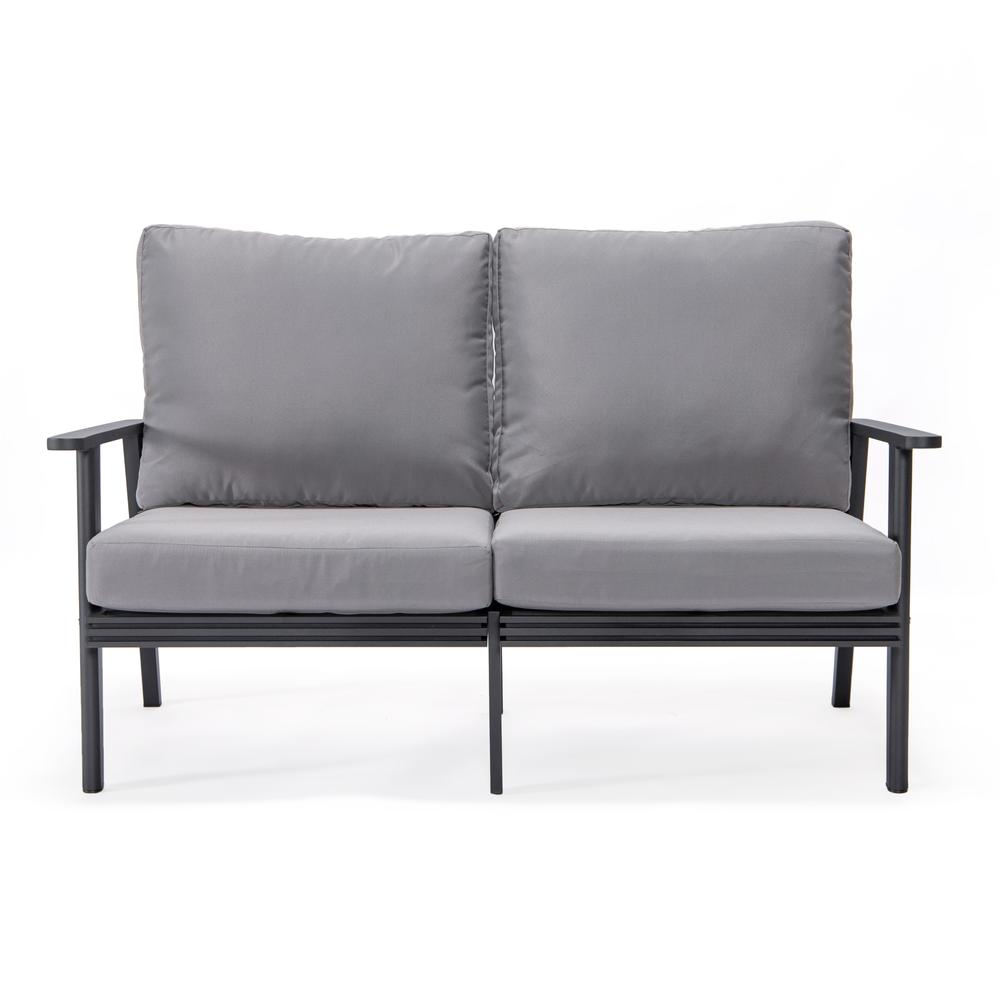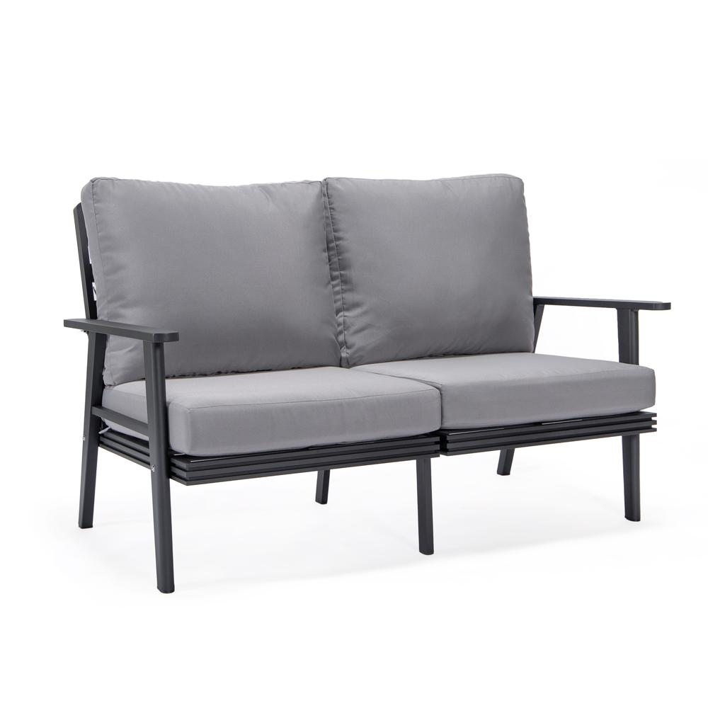 - Walbrooke Outdoor Aluminum Loveseat with Black Frame - Weather Resistant Patio Furniture