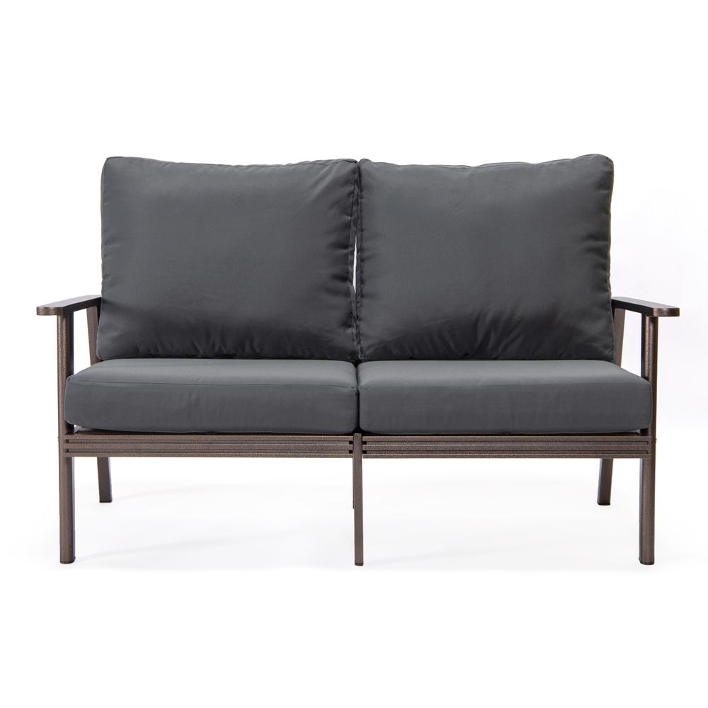 - Outdoor Patio Loveseat with Brown Aluminum Frame