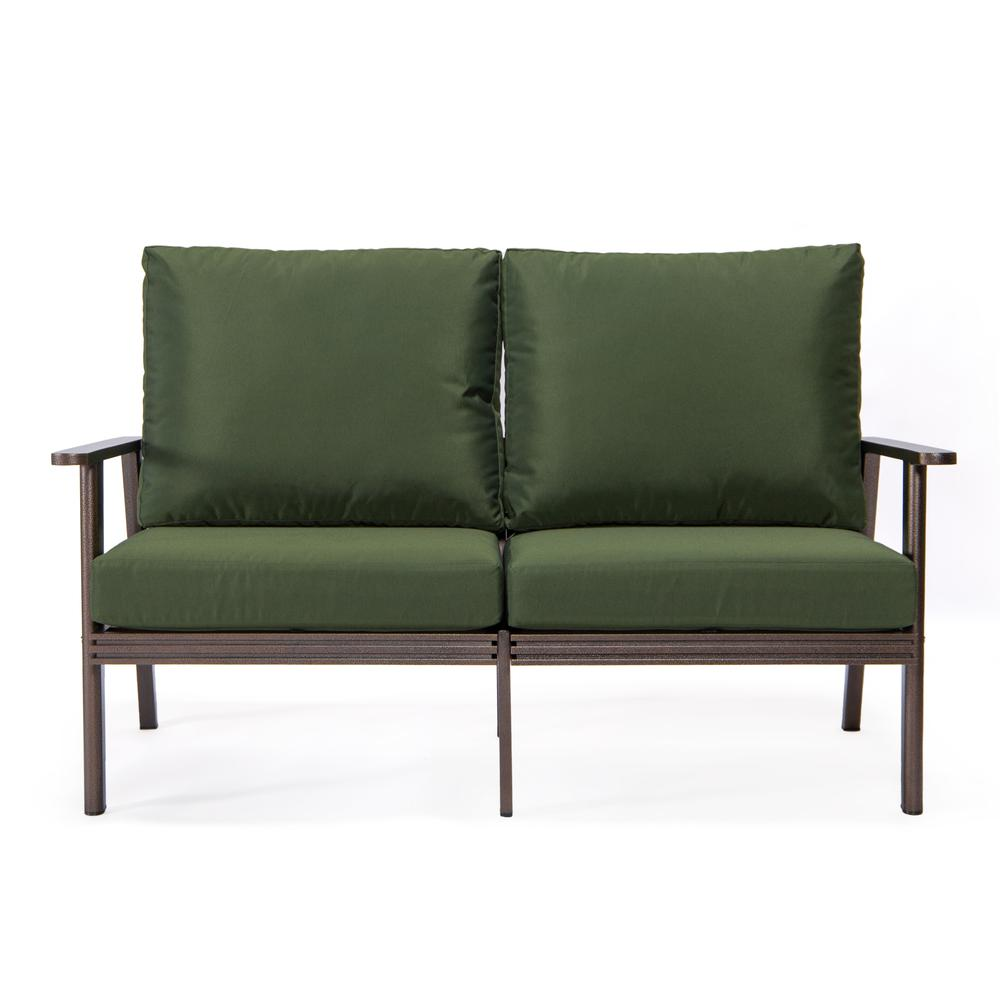 - Walbrooke Outdoor Aluminum Loveseat with Brown Frame | Weather Resistant, Comfortable Cushions, Easy Assembly