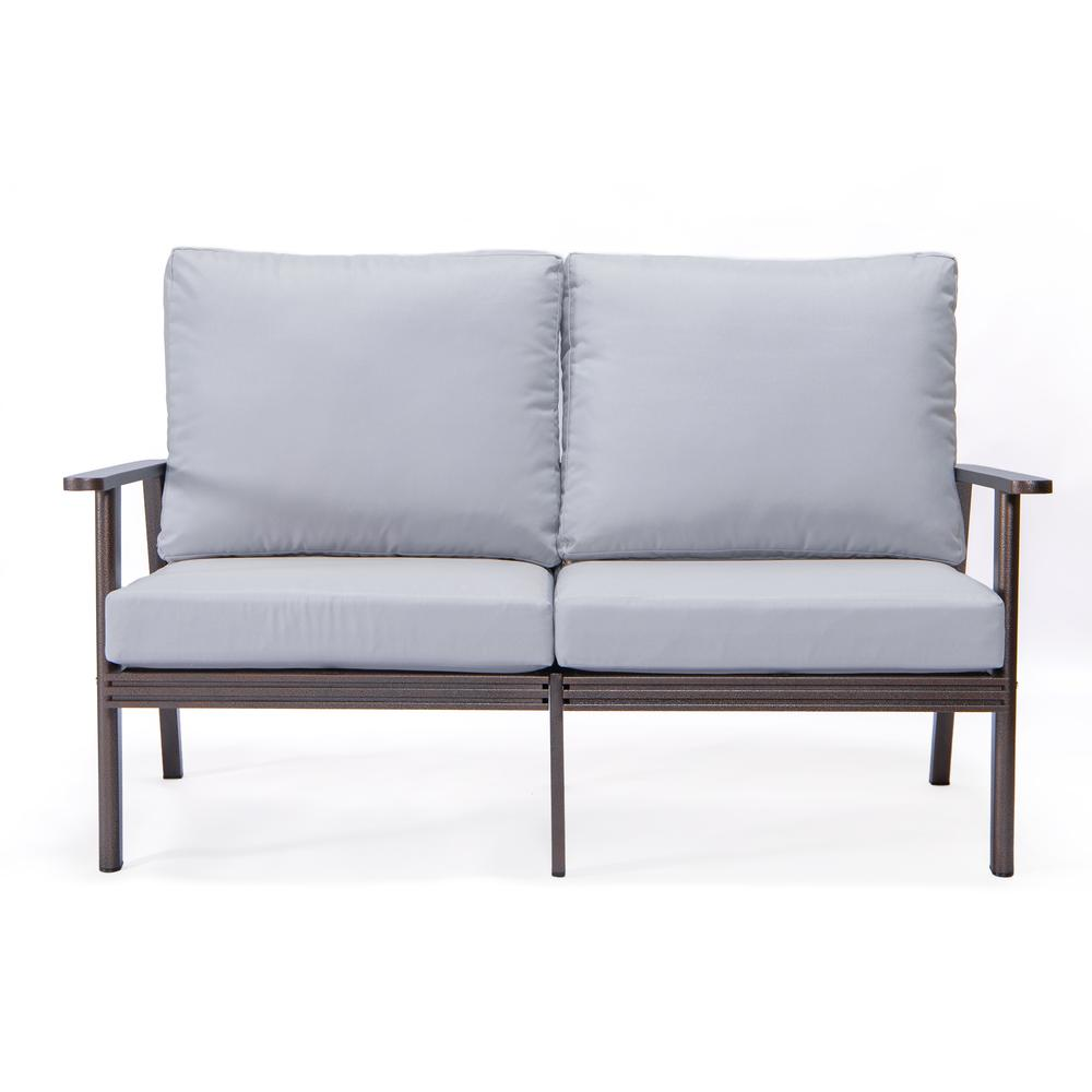 - Walbrooke Outdoor Aluminum Loveseat with Brown Frame - Weather-Resistant and Comfortable