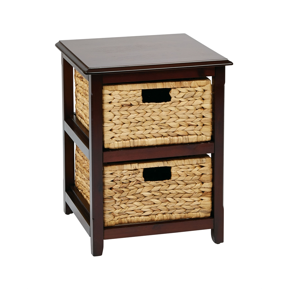 Seabrook Two-Tier Storage Unit with Espresso Finish and Natural Baskets