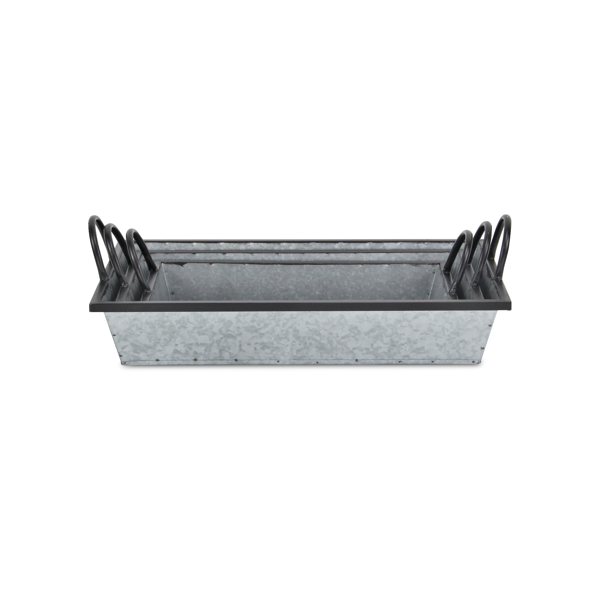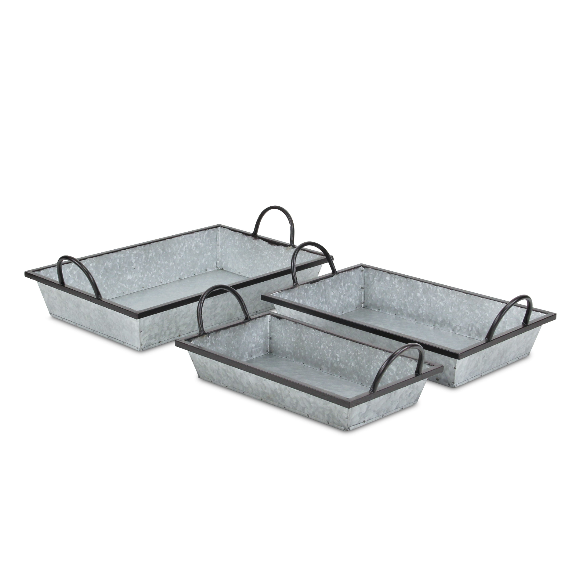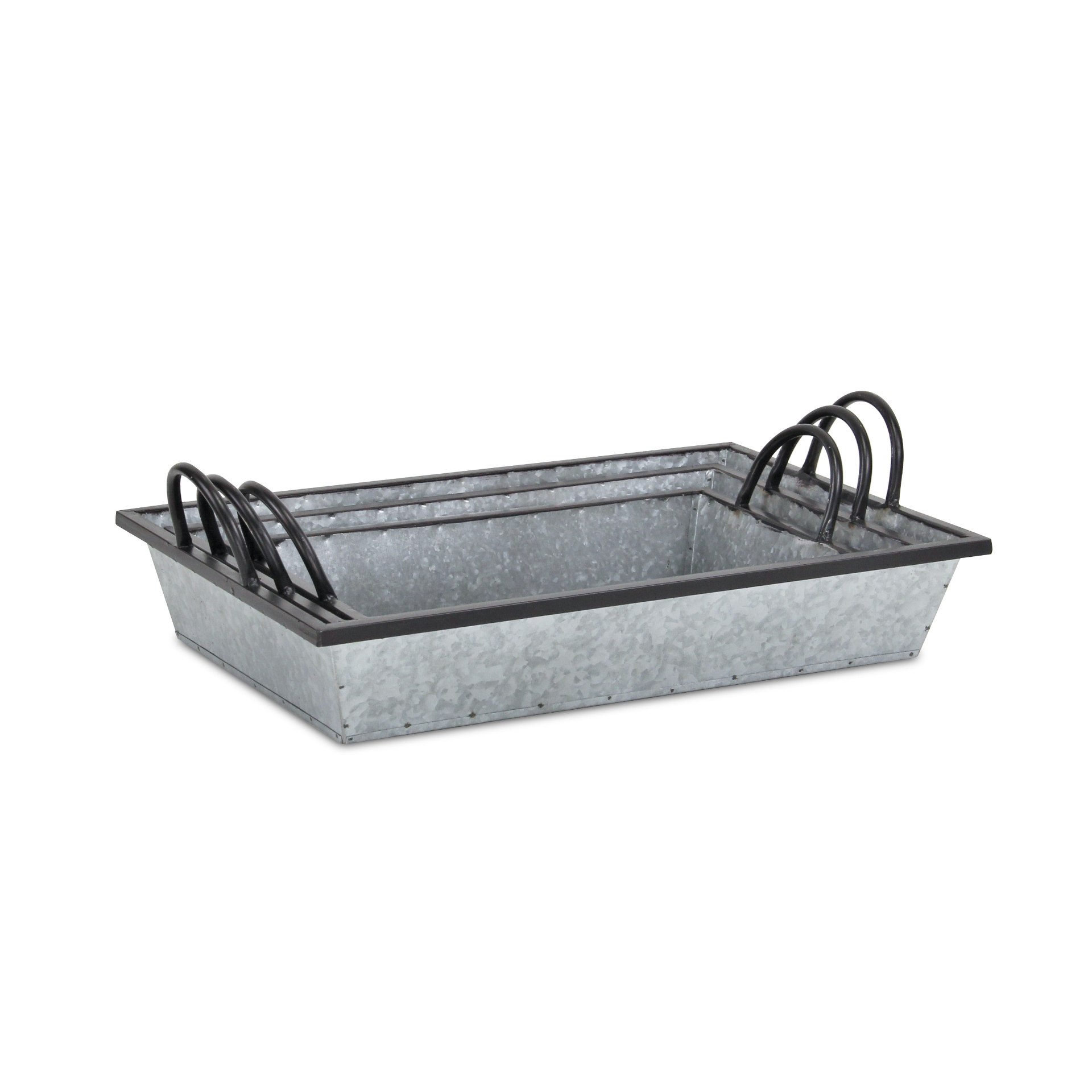 Set Of Three 18" Gray and Black Metal Handmade Trays With Handles - Versatile and Chic Addition to Your Home
