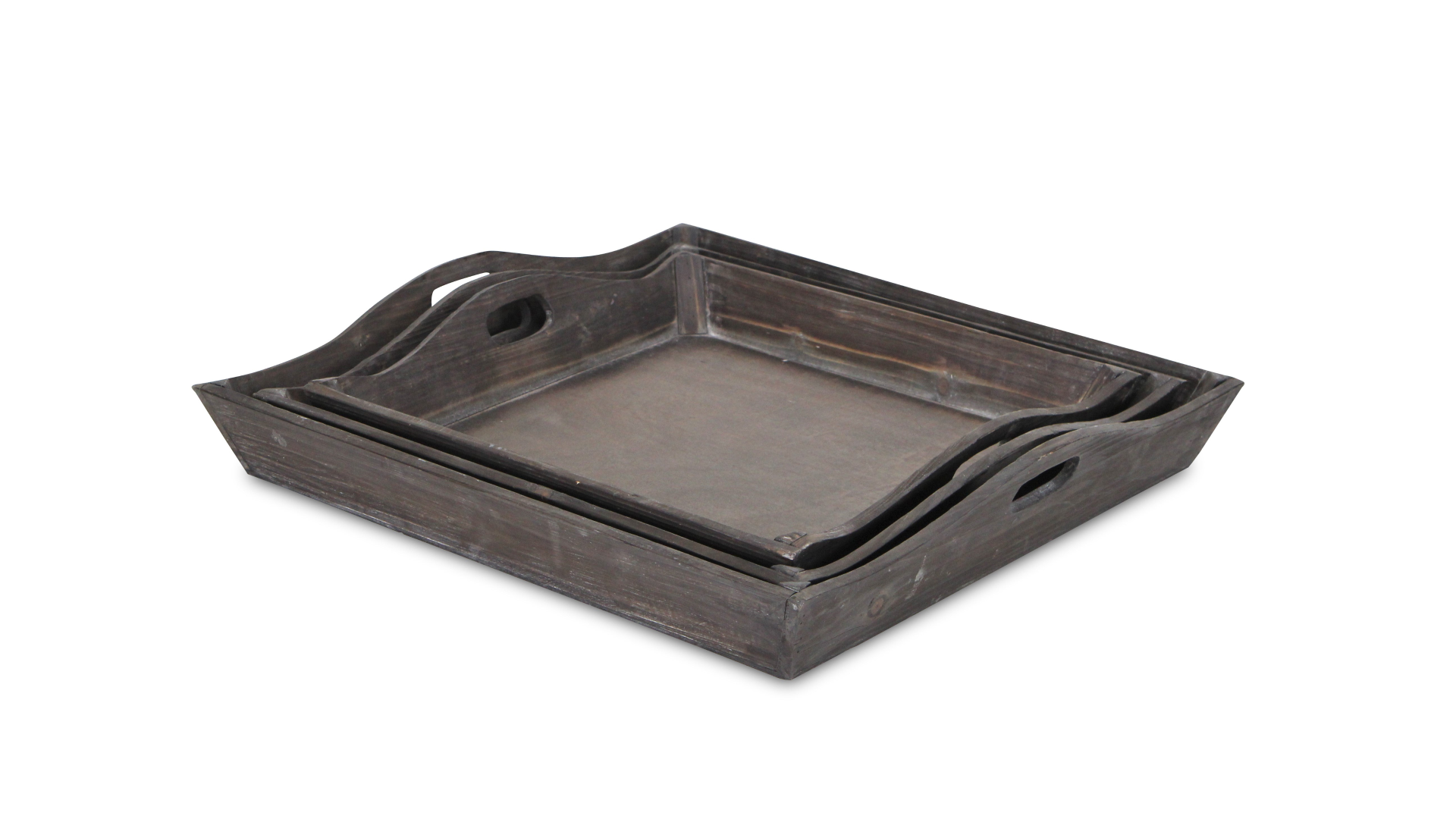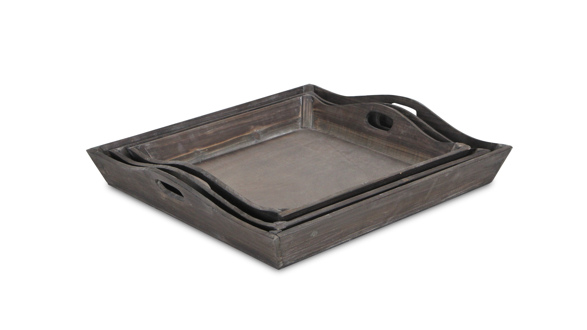 - Set Of Three Rustic Brown Wood Handmade Trays With Handles