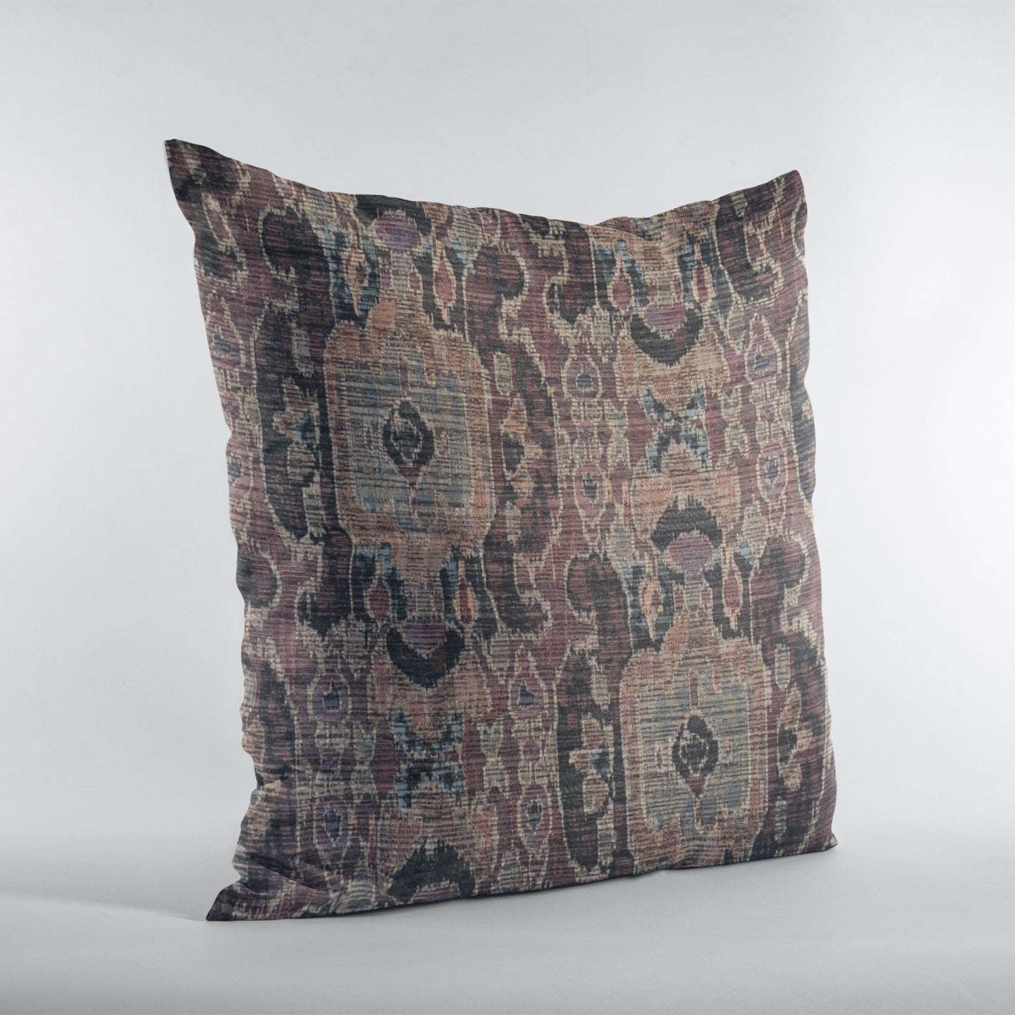 To maintain the pristine condition of this handmade luxury pillow, we recommend dry cleaning. The fabric content is 88% Polyester and 12% Cotton, ensuring durability and long-lasting beauty. The captivating pattern is inspired by the intricate Ikat design, adding a touch of timeless elegance to your home.