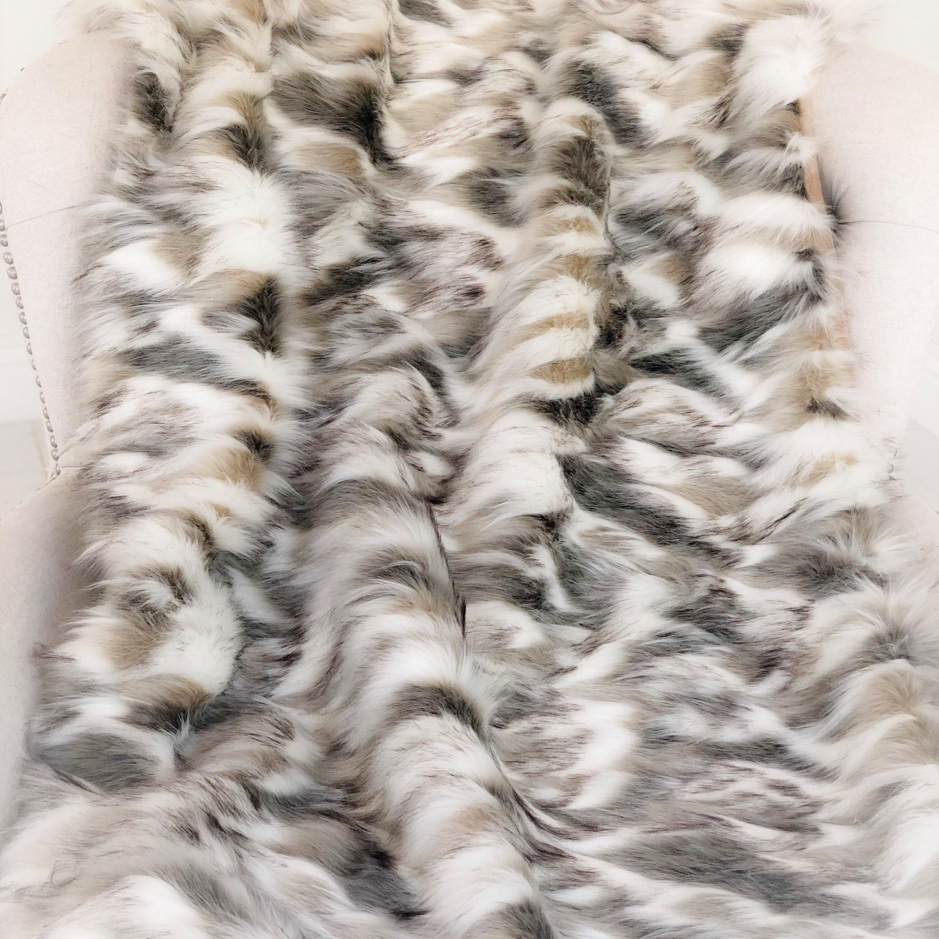 Elevate the style and comfort of your living space with our stunning Tibet Faux Fox Handmade Luxury Throw. Crafted with meticulous attention to detail, this throw blanket is a perfect blend of luxury and functionality. Whether you're curling up on the couch or adding a stylish accent to your bed, this throw will enhance the ambiance of any room. The elegant ivory beige and gray colors create a sophisticated look that complements various decor styles.