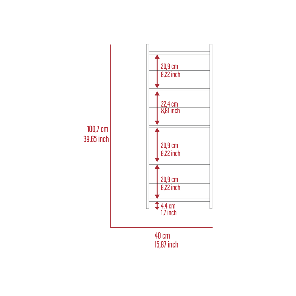 - Freestanding bookcase (39.6" H) with four spacious shelves (8.22" H x 15.3" W).