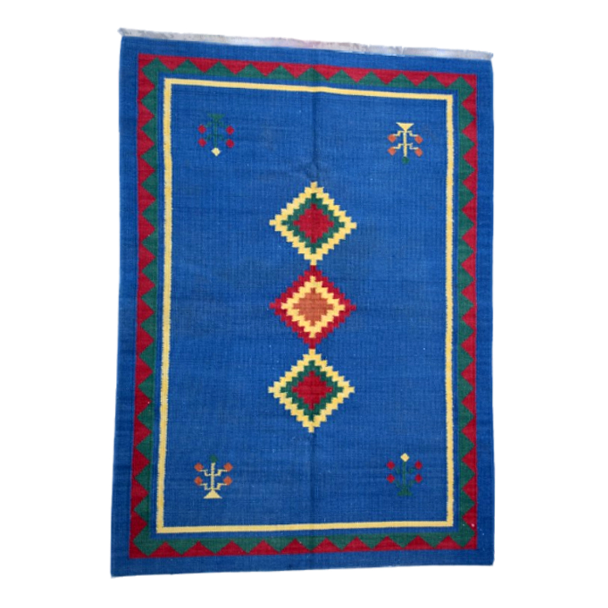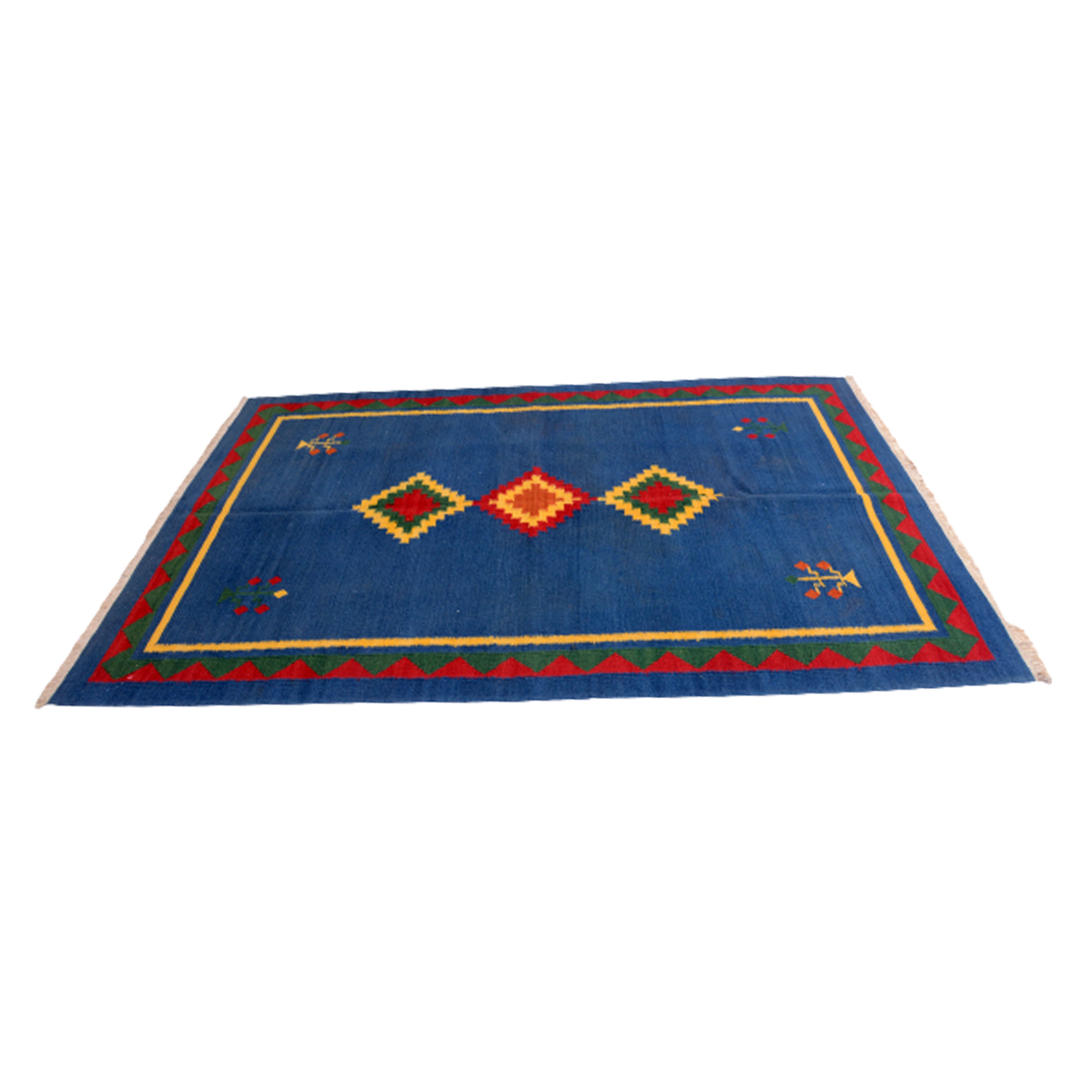 - Tribal Handmade Blue Kilim Rug - 100% Genuine Wool, Vintage/Used Design