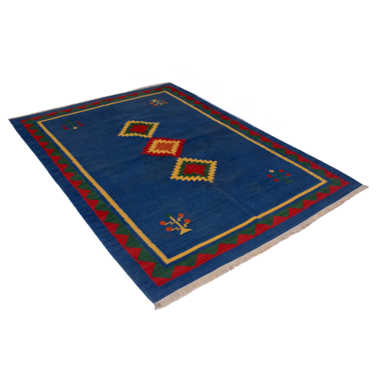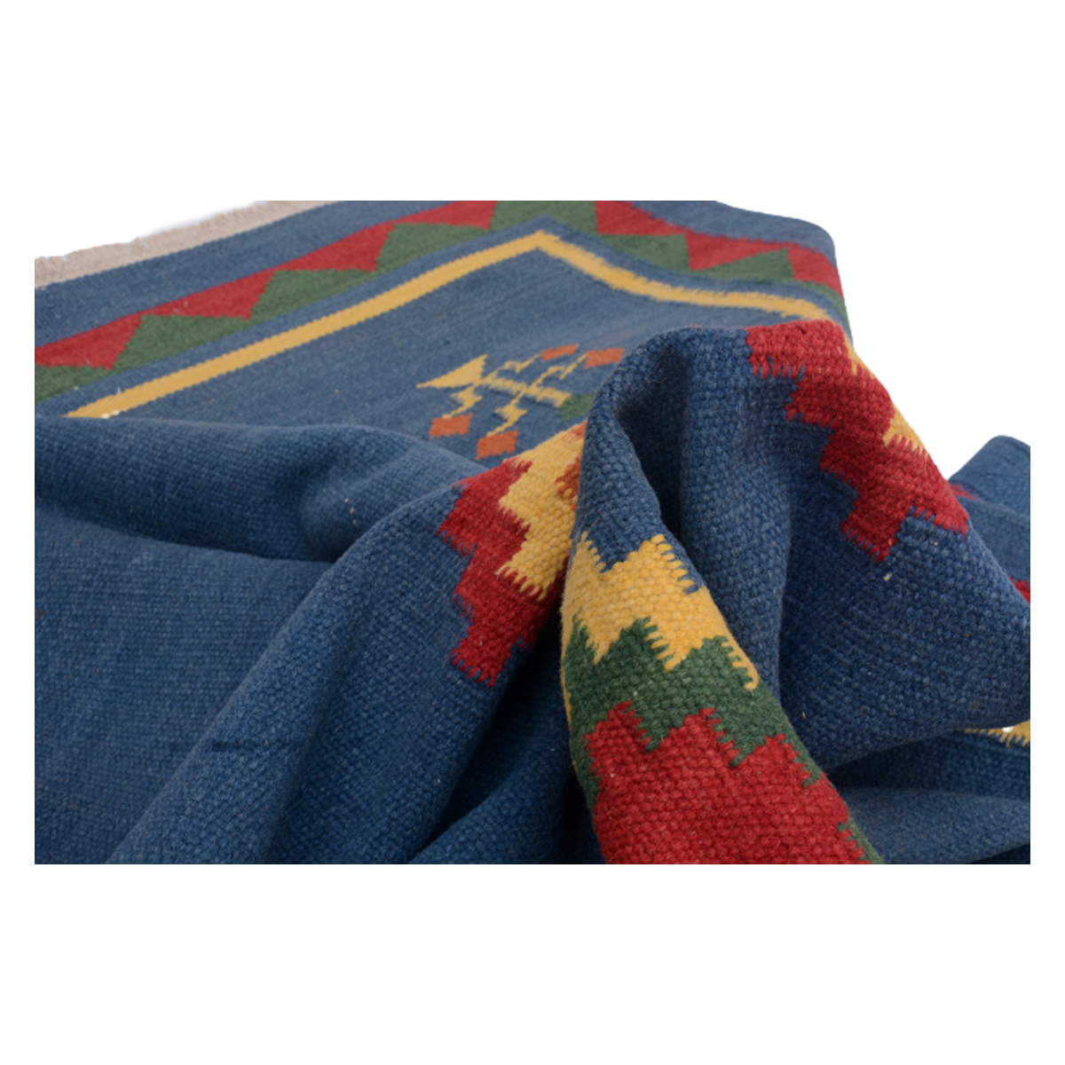 Enhance Your Home Decor with the Tribal Handmade Blue Kilim Rug