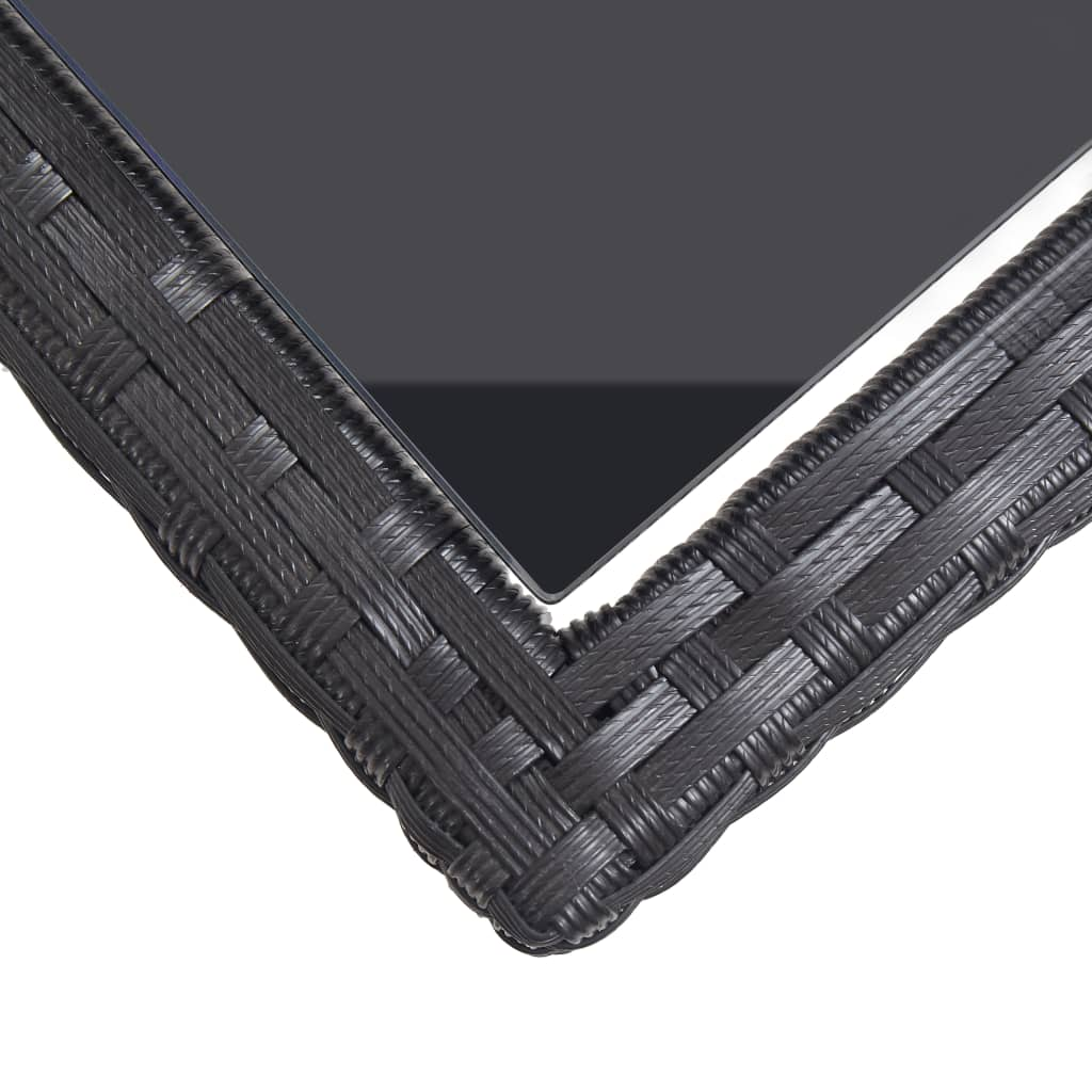 Create a compelling and cohesive aesthetic in your patio space with this vidaXL 3 Piece Patio Dining Set Black. This dining set is perfect for outdoor use, providing a comfortable and stylish seating option for your patio. Made from a powder-coated steel frame covered with weather-resistant PE rattan, this dining set is sturdy and built to last. The black color adds a touch of elegance, while the glass tabletop adds a sumptuous touch to your patio space.